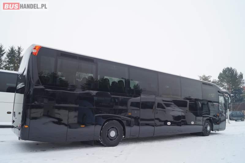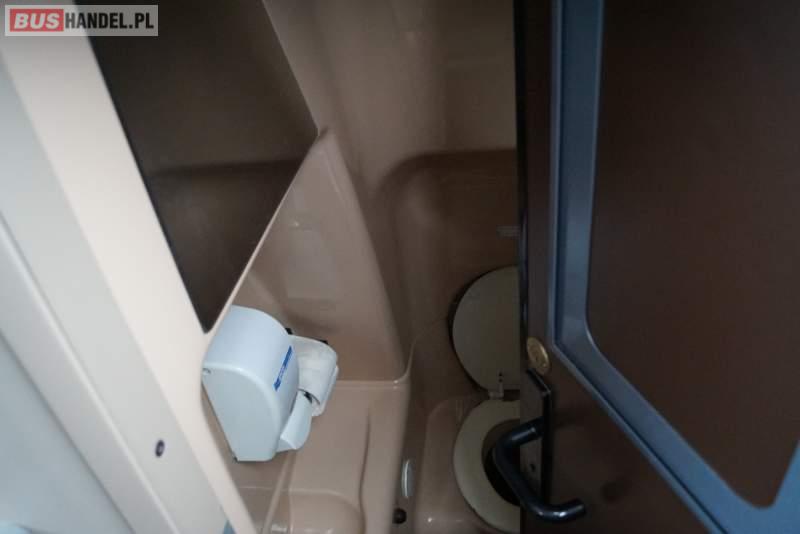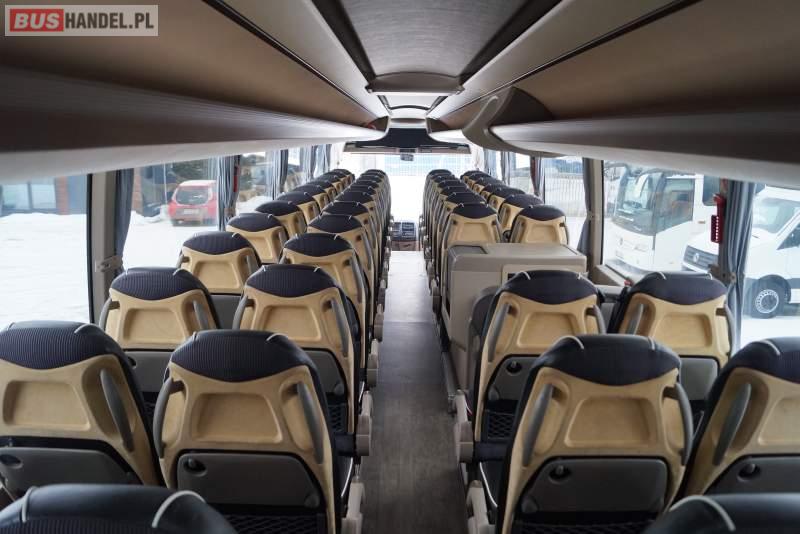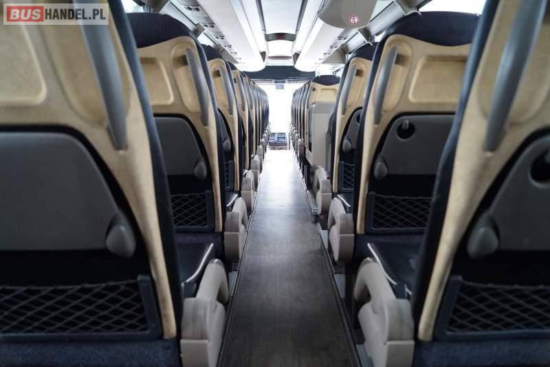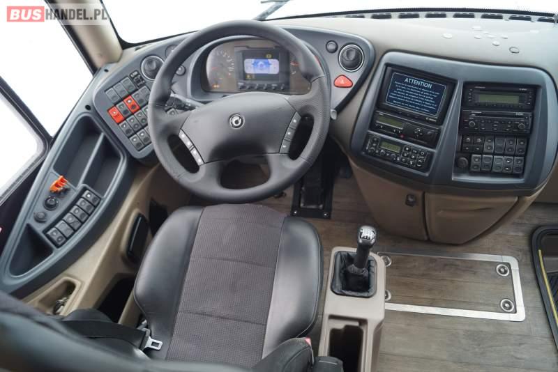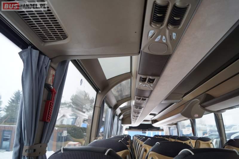 : video, WC, lodówka, caffebar, fotele odchylane, oświetlenie indywidualne, nawiewy dyszowe, siateczki, ABS, ASR, tempomat, retarder, nawigacja, CD, podnóżki, stoliczki, mikrofon, klimatyzacja, radio, wyświetlacz matrix, regulacja wysokości nadwozia, centralny zamek, podwójne szyby boczne, wspomaganie kierownicy, elektryczne lusterka, DVD, ogrzewanie stacjonarne