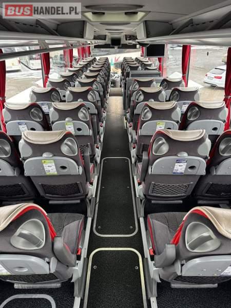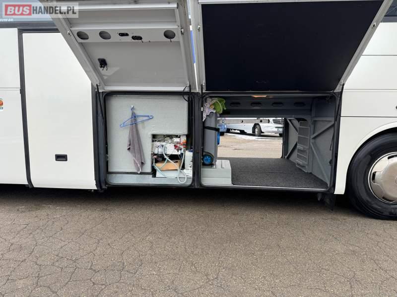 : WC, lodówka, caffebar, kabina sypialna, fotele odchylane, oświetlenie indywidualne, nawiewy dyszowe, siateczki, ABS, ASR, tempomat, retarder, CD, podnóżki, stoliczki, mikrofon, klimatyzacja, radio, wyświetlacz matrix, regulacja wysokości nadwozia, centralny zamek, podwójne szyby boczne, wspomaganie kierownicy, elektryczne lusterka, DVD, ogrzewanie stacjonarne, ESP