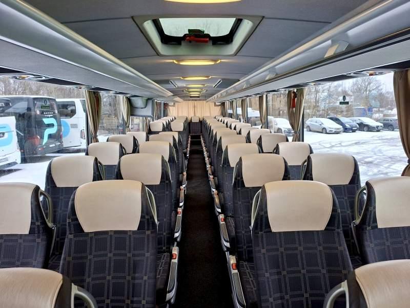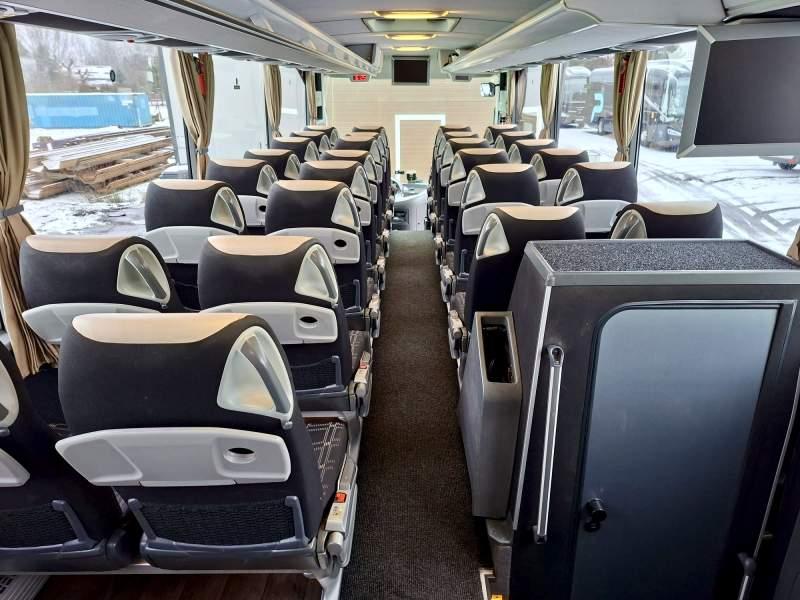 : video, WC, lodówka, oświetlenie indywidualne, nawiewy dyszowe, siateczki, ABS, ASR, tempomat, retarder, CD, podnóżki, stoliczki, mikrofon, klimatyzacja, radio, sejf, regulacja wysokości nadwozia, centralny zamek, podwójne szyby boczne, wspomaganie kierownicy, elektryczne lusterka, aluminiowe felgi, fotele odchylane i rozsuwane, DVD, ogrzewanie stacjonarne, ESP