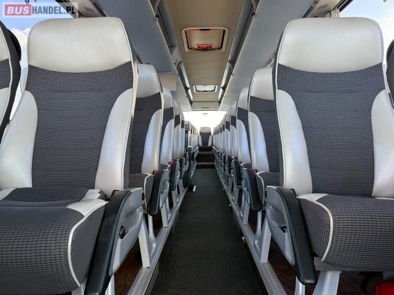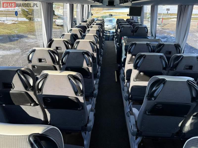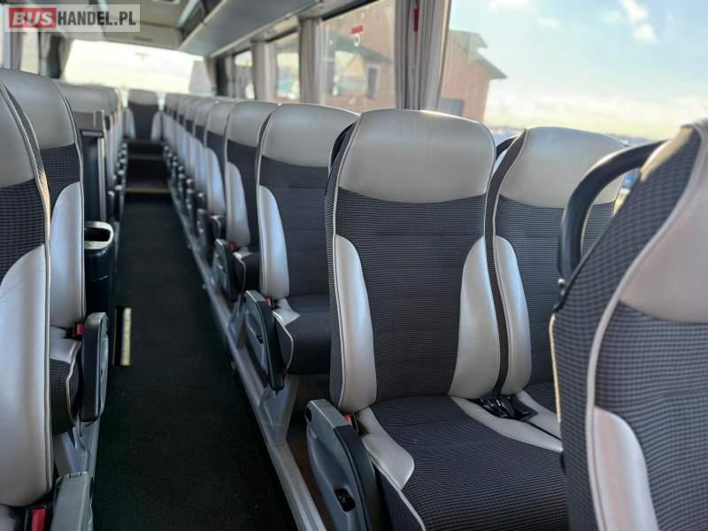 : video, WC, lodówka, caffebar, kabina sypialna, oświetlenie indywidualne, nawiewy dyszowe, siateczki, ABS, ASR, tempomat, retarder, nawigacja, CD, podnóżki, stoliczki, mikrofon, klimatyzacja, radio, sejf, regulacja wysokości nadwozia, centralny zamek, podwójne szyby boczne, wspomaganie kierownicy, elektryczne lusterka, fotele odchylane i rozsuwane, DVD, ogrzewanie stacjonarne, hak holowniczy, ESP