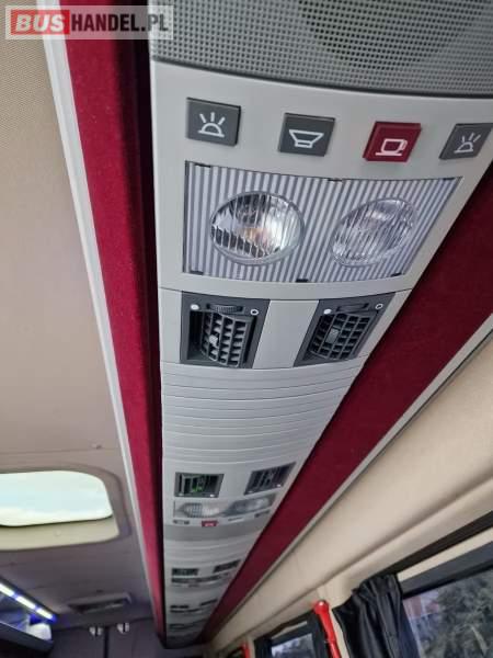 : fotele odchylane, oświetlenie indywidualne, ABS, ASR, tempomat, retarder, CD, mikrofon, klimatyzacja, regulacja wysokości nadwozia, centralny zamek, wspomaganie kierownicy, elektryczne lusterka, DVD, ogrzewanie stacjonarne, ESP
