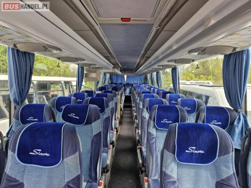 : video, WC, lodówka, caffebar, kabina sypialna, fotele odchylane, oświetlenie indywidualne, nawiewy dyszowe, siateczki, ABS, ASR, tempomat, retarder, CD, podnóżki, stoliczki, mikrofon, klimatyzacja, radio, sejf, regulacja wysokości nadwozia, centralny zamek, podwójne szyby boczne, wspomaganie kierownicy, elektryczne lusterka, DVD, ogrzewanie stacjonarne, ESP