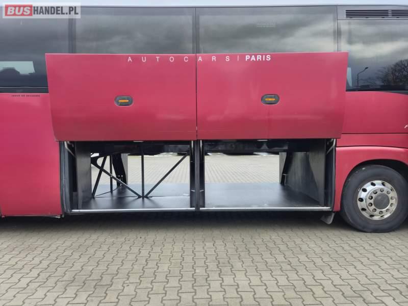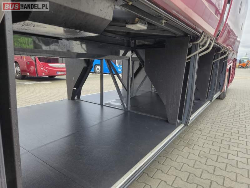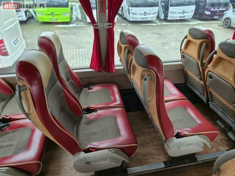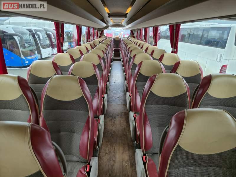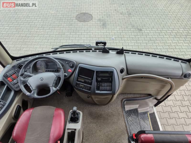: video, lodówka, fotele odchylane, oświetlenie indywidualne, siateczki, ABS, tempomat, retarder, CD, podnóżki, stoliczki, klimatyzacja, radio, regulacja wysokości nadwozia, centralny zamek, podwójne szyby boczne, wspomaganie kierownicy, elektryczne lusterka, DVD, ogrzewanie stacjonarne