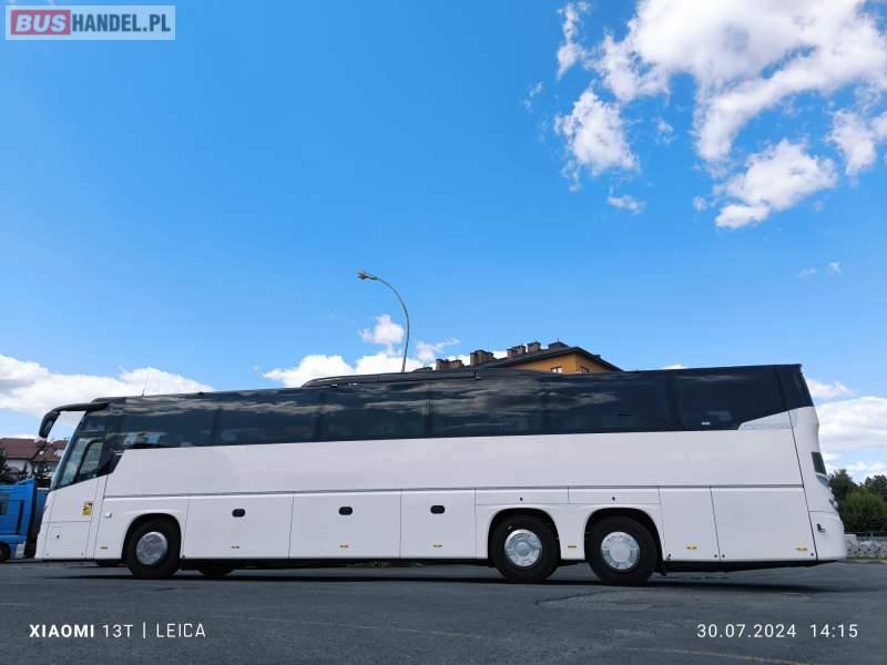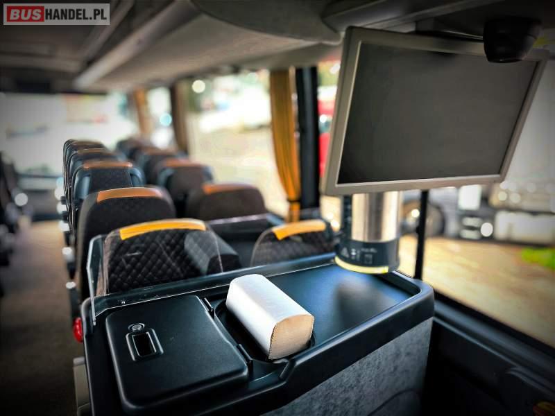 : WC, lodówka, caffebar, kabina sypialna, oświetlenie indywidualne, nawiewy dyszowe, siateczki, ABS, ASR, tempomat, retarder, nawigacja, CD, stoliczki, mikrofon, klimatyzacja, radio, sejf, regulacja wysokości nadwozia, centralny zamek, podwójne szyby boczne, wspomaganie kierownicy, elektryczne lusterka, fotele odchylane i rozsuwane, DVD, ogrzewanie stacjonarne, hak holowniczy, ESP