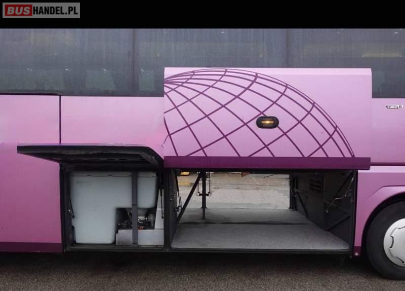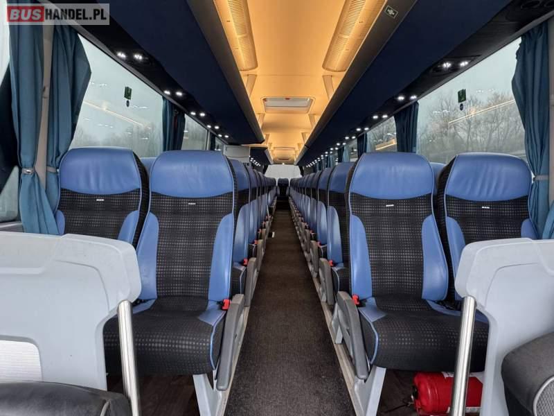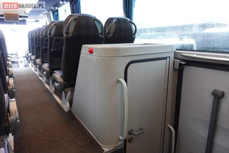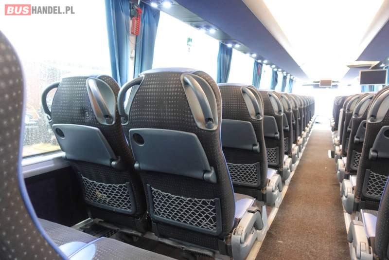 : klimatyzacja, video, WC, lodówka, kabina sypialna, oświetlenie indywidualne, nawiewy dyszowe, fotele odchylane, podnóżki, stoliczki, siateczki, ABS, ASR, tempomat, retarder, nawigacja, CD, mikrofon, radio, fotele odchylane i rozsuwane, regulacja wysokości nadwozia, centralny zamek, podwójne szyby boczne, wspomaganie kierownicy, elektryczne lusterka, ogrzewanie stacjonarne, DVD, ESP