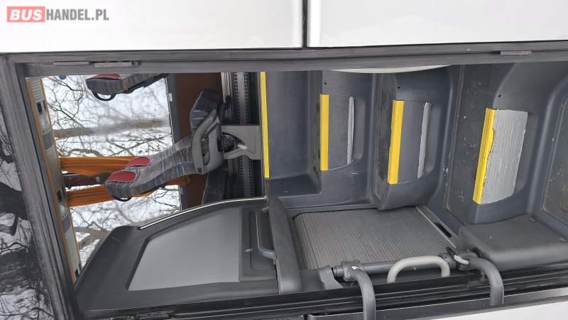 : video, lodówka, kabina sypialna, oświetlenie indywidualne, nawiewy dyszowe, siateczki, ABS, ASR, tempomat, retarder, CD, podnóżki, stoliczki, mikrofon, klimatyzacja, radio, regulacja wysokości nadwozia, centralny zamek, podwójne szyby boczne, wspomaganie kierownicy, elektryczne lusterka, aluminiowe felgi, fotele odchylane i rozsuwane, DVD, ogrzewanie stacjonarne, ESP