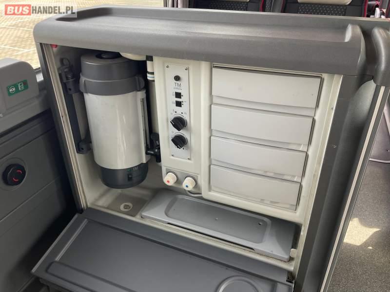 : video, WC, lodówka, caffebar, kabina sypialna, fotele odchylane, oświetlenie indywidualne, nawiewy dyszowe, siateczki, ABS, ASR, tempomat, retarder, podnóżki, stoliczki, mikrofon, klimatyzacja, radio, wyświetlacz matrix, sejf, regulacja wysokości nadwozia, centralny zamek, podwójne szyby boczne, wspomaganie kierownicy, elektryczne lusterka, DVD, ogrzewanie stacjonarne, ESP