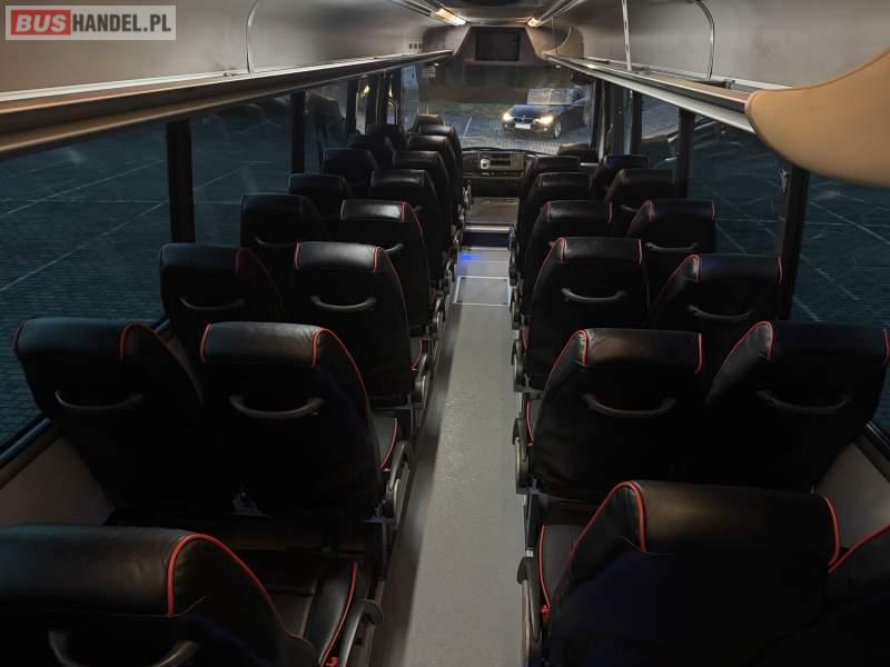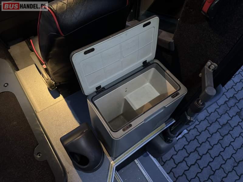 : video, lodówka, fotele odchylane, oświetlenie indywidualne, nawiewy dyszowe, siateczki, ABS, ASR, retarder, CD, podnóżki, mikrofon, klimatyzacja, wyświetlacz matrix, regulacja wysokości nadwozia, podwójne szyby boczne, wspomaganie kierownicy, elektryczne lusterka, DVD, ogrzewanie stacjonarne, ESP