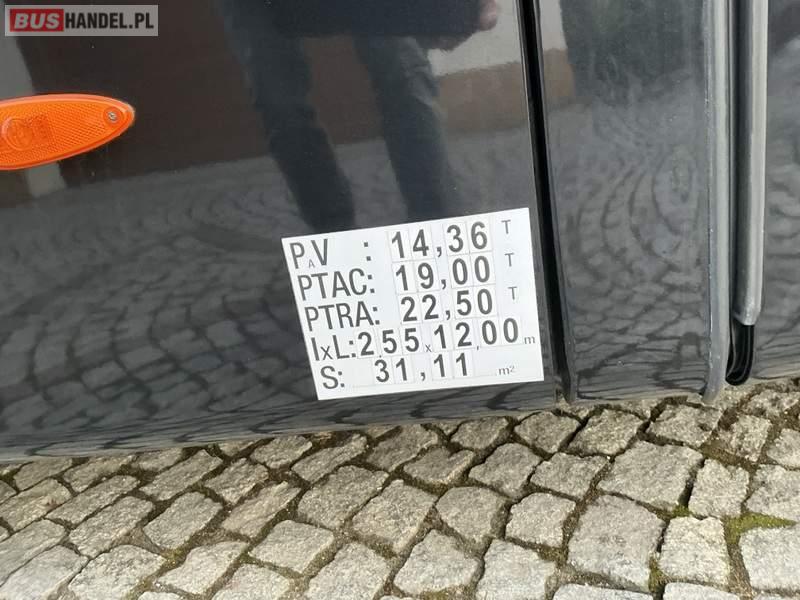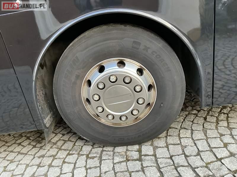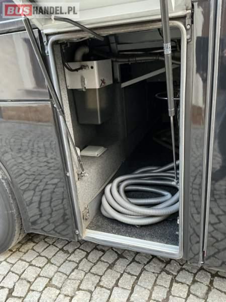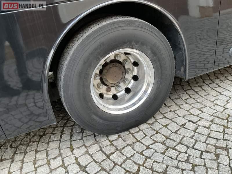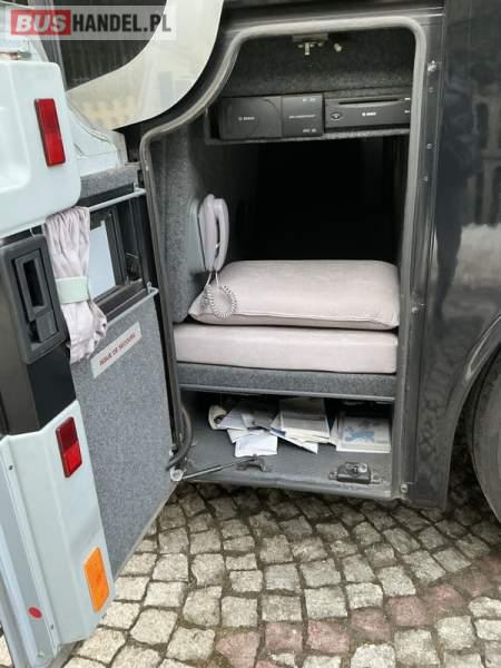 : WC, lodówka, caffebar, kabina sypialna, fotele odchylane, oświetlenie indywidualne, nawiewy dyszowe, ABS, ASR, tempomat, retarder, CD, podnóżki, stoliczki, mikrofon, klimatyzacja, radio, regulacja wysokości nadwozia, centralny zamek, podwójne szyby boczne, wspomaganie kierownicy, elektryczne lusterka, aluminiowe felgi, DVD, ogrzewanie stacjonarne, ESP