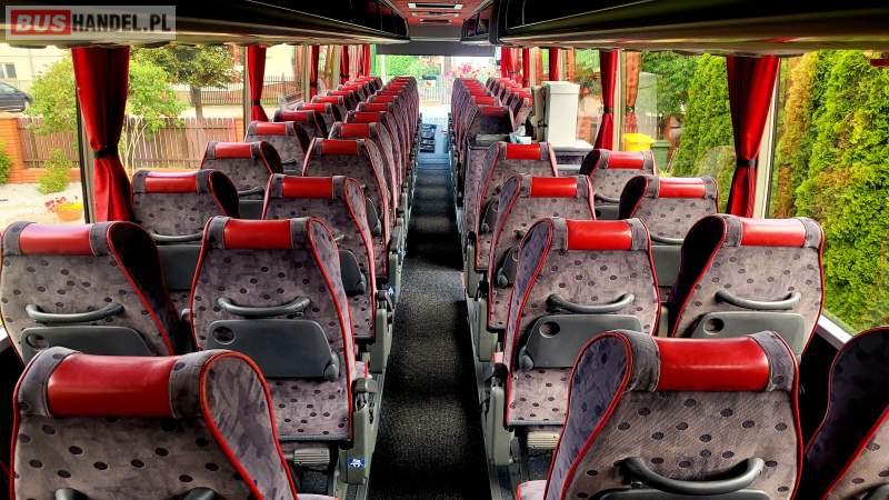: WC, lodówka, caffebar, kabina sypialna, fotele odchylane, oświetlenie indywidualne, nawiewy dyszowe, siateczki, ABS, ASR, tempomat, retarder, nawigacja, CD, podnóżki, stoliczki, mikrofon, klimatyzacja, radio, regulacja wysokości nadwozia, centralny zamek, podwójne szyby boczne, wspomaganie kierownicy, elektryczne lusterka, DVD, ogrzewanie stacjonarne