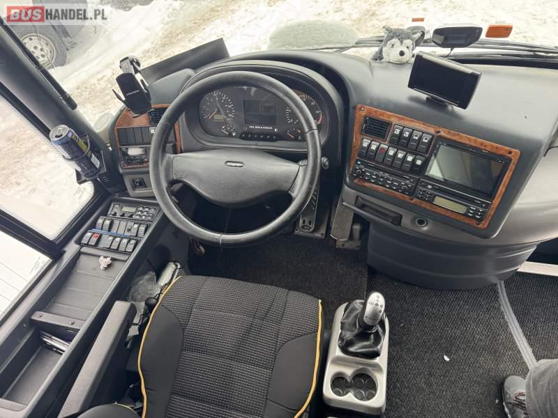 : klimatyzacja, video, WC, lodówka, caffebar, kabina sypialna, oświetlenie indywidualne, nawiewy dyszowe, fotele odchylane, podnóżki, stoliczki, siateczki, ABS, ASR, tempomat, retarder, telefon, nawigacja, CD, mikrofon, radio, fotele odchylane i rozsuwane, rampa dla inwalidów, regulacja wysokości nadwozia, podwójne szyby boczne, wspomaganie kierownicy, elektryczne lusterka, ogrzewanie stacjonarne, DVD, hak holowniczy, ESP