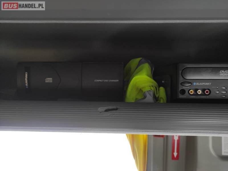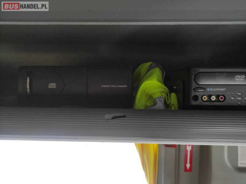 : video, WC, lodówka, caffebar, kabina sypialna, fotele odchylane, oświetlenie indywidualne, nawiewy dyszowe, siateczki, ABS, ASR, tempomat, retarder, telefon, nawigacja, CD, podnóżki, stoliczki, mikrofon, klimatyzacja, radio, regulacja wysokości nadwozia, centralny zamek, wspomaganie kierownicy, elektryczne lusterka, fotele odchylane i rozsuwane, DVD, ogrzewanie stacjonarne, ESP