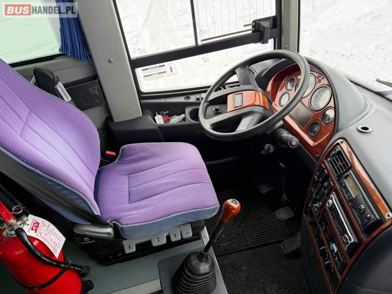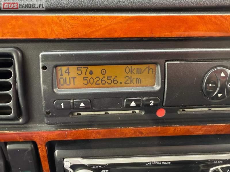 : video, fotele odchylane, oświetlenie indywidualne, nawiewy dyszowe, siateczki, ABS, ASR, retarder, CD, podnóżki, stoliczki, mikrofon, klimatyzacja, radio, centralny zamek, podwójne szyby boczne, wspomaganie kierownicy, elektryczne lusterka, DVD, ogrzewanie stacjonarne
