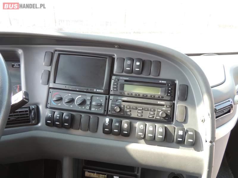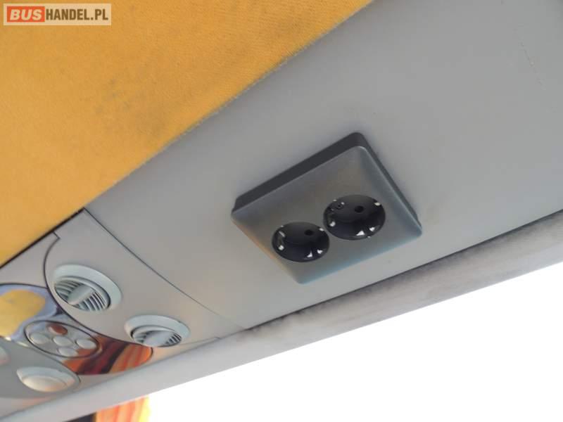 : video, WC, lodówka, caffebar, kabina sypialna, oświetlenie indywidualne, nawiewy dyszowe, siateczki, ABS, ASR, tempomat, retarder, CD, podnóżki, stoliczki, mikrofon, klimatyzacja, radio, regulacja wysokości nadwozia, centralny zamek, podwójne szyby boczne, wspomaganie kierownicy, elektryczne lusterka, fotele odchylane i rozsuwane, DVD, ogrzewanie stacjonarne, ESP