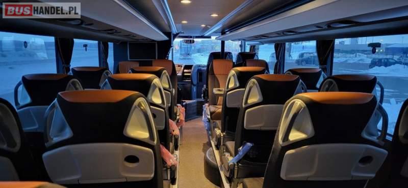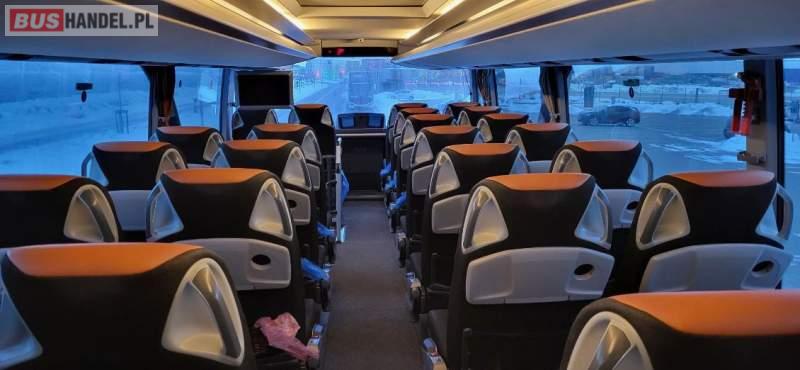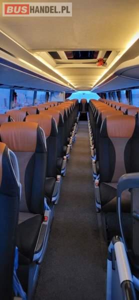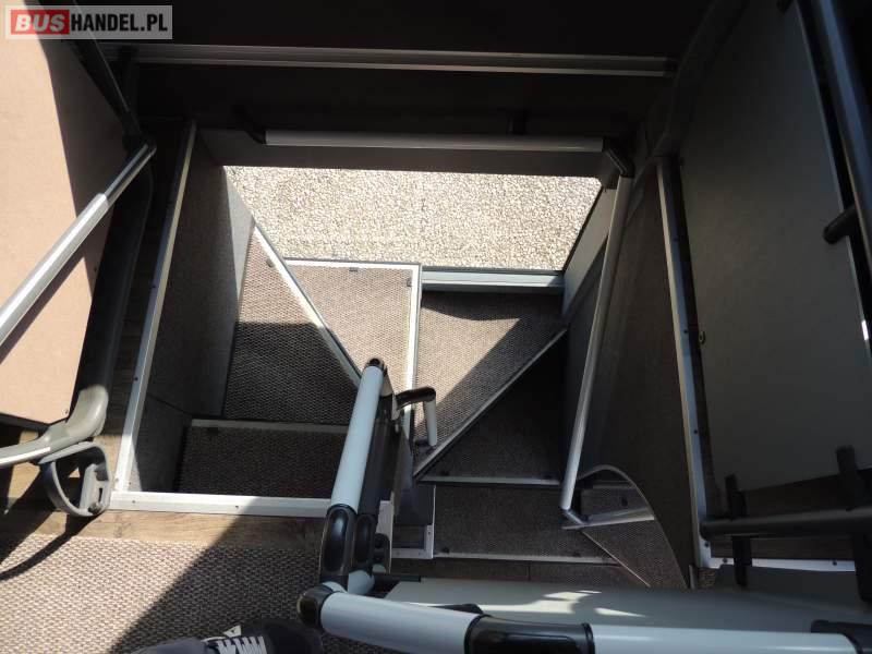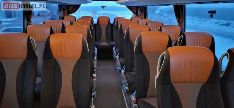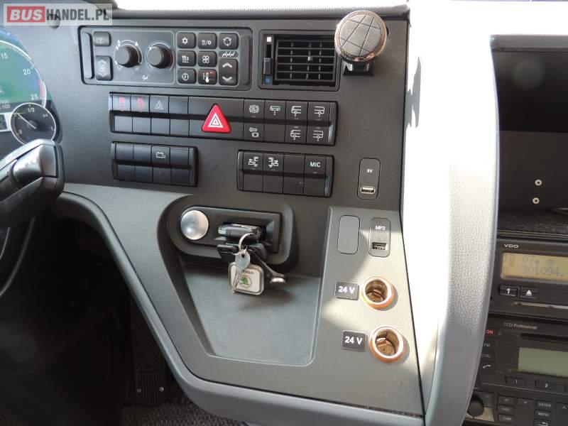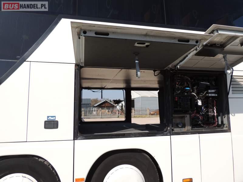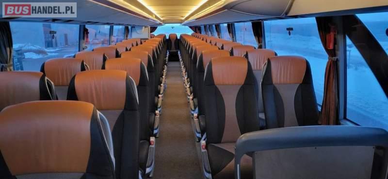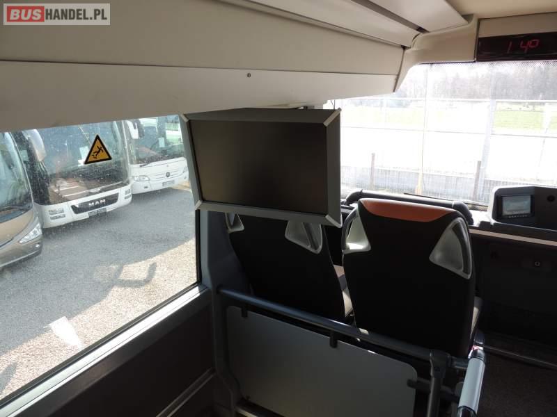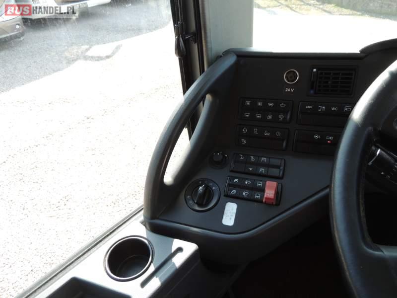 : video, WC, lodówka, caffebar, kabina sypialna, oświetlenie indywidualne, nawiewy dyszowe, siateczki, ABS, ASR, tempomat, retarder, CD, podnóżki, stoliczki, mikrofon, klimatyzacja, radio, sejf, regulacja wysokości nadwozia, centralny zamek, podwójne szyby boczne, wspomaganie kierownicy, elektryczne lusterka, fotele odchylane i rozsuwane, DVD, ogrzewanie stacjonarne, ESP