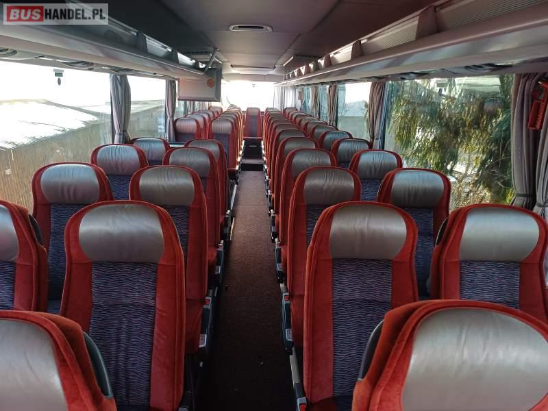 : WC, lodówka, caffebar, kabina sypialna, fotele odchylane, oświetlenie indywidualne, nawiewy dyszowe, ABS, ASR, tempomat, retarder, nawigacja, CD, podnóżki, stoliczki, mikrofon, klimatyzacja, radio, regulacja wysokości nadwozia, centralny zamek, podwójne szyby boczne, elektryczne lusterka, fotele odchylane i rozsuwane, DVD, ogrzewanie stacjonarne, hak holowniczy, ESP