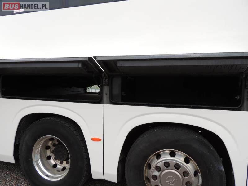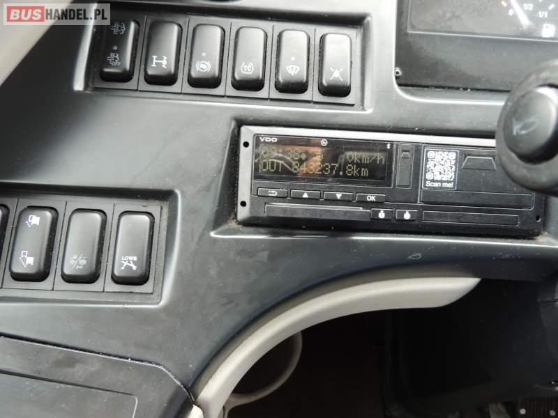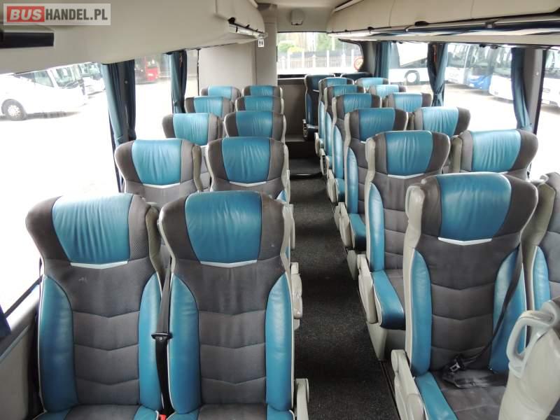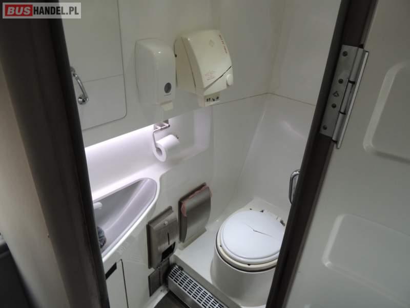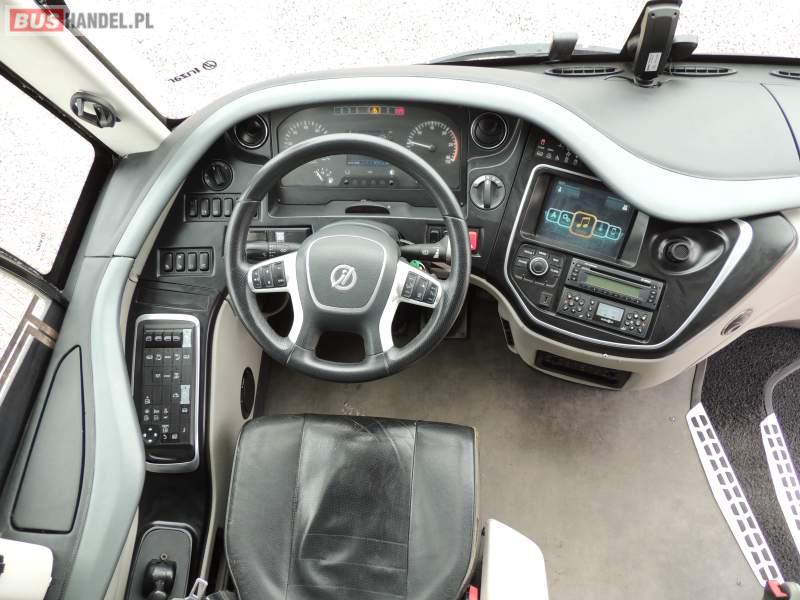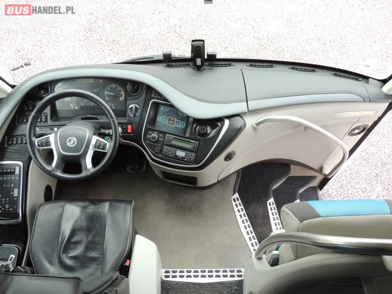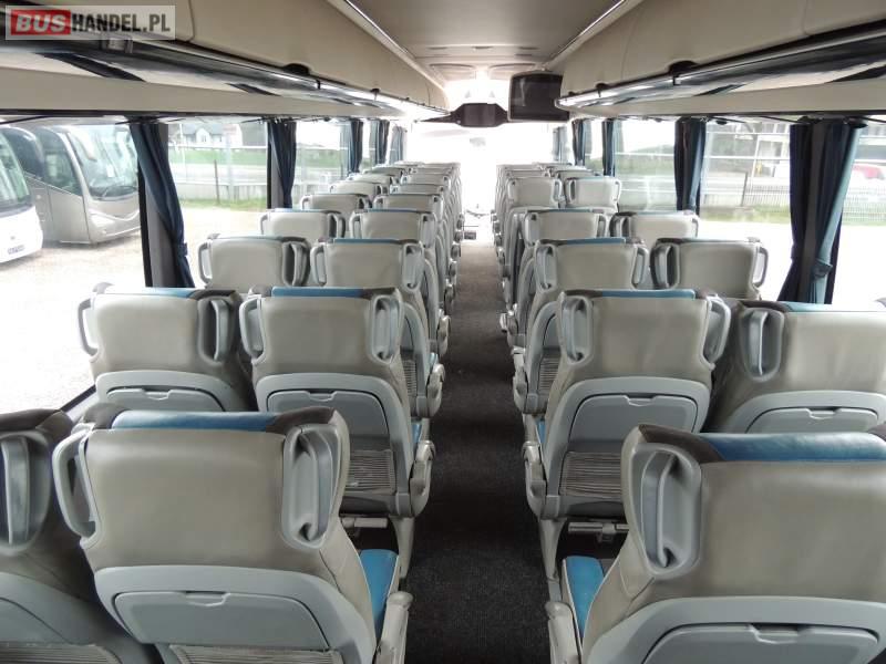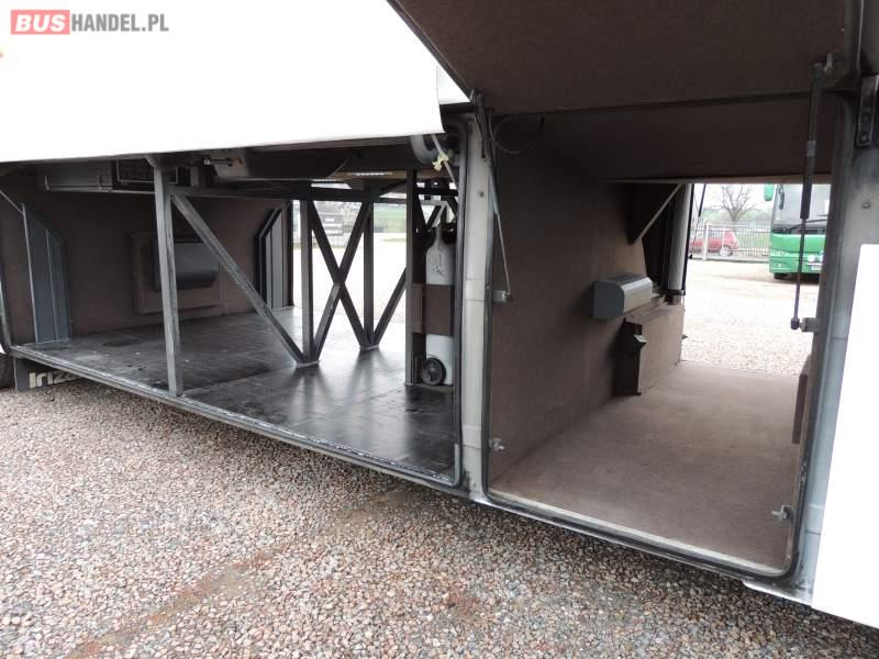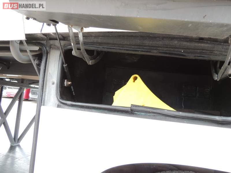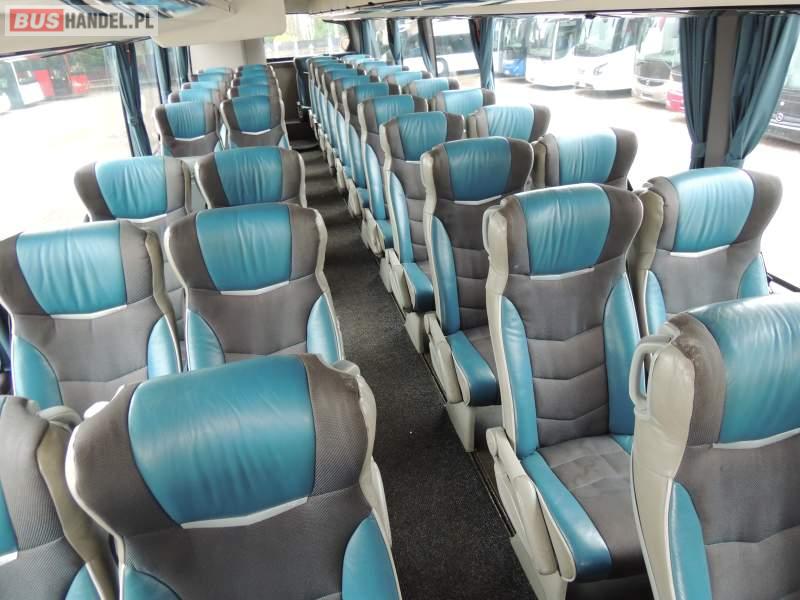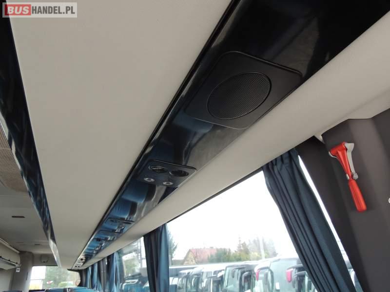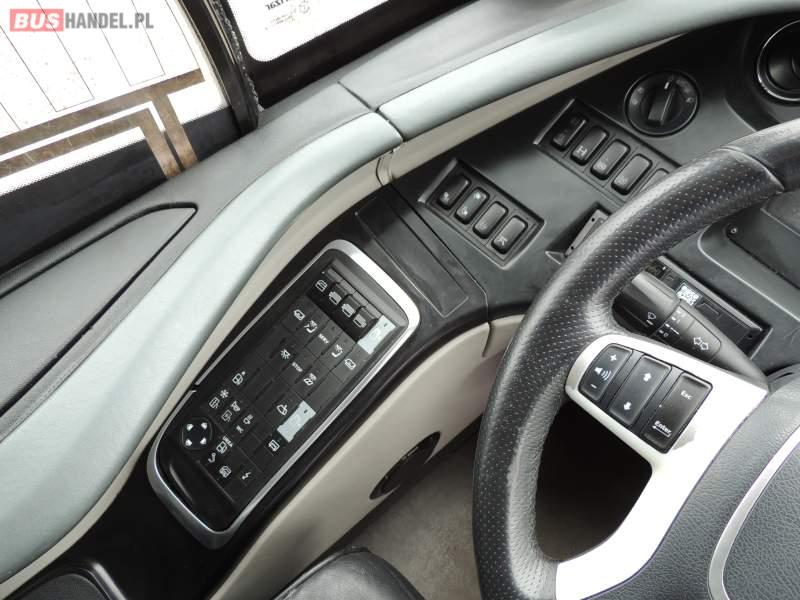 : video, WC, lodówka, caffebar, kabina sypialna, oświetlenie indywidualne, nawiewy dyszowe, siateczki, ABS, ASR, tempomat, retarder, nawigacja, CD, podnóżki, stoliczki, mikrofon, klimatyzacja, radio, sejf, regulacja wysokości nadwozia, centralny zamek, podwójne szyby boczne, wspomaganie kierownicy, aluminiowe felgi, fotele odchylane i rozsuwane, DVD, ogrzewanie stacjonarne, ESP