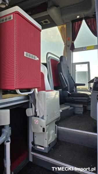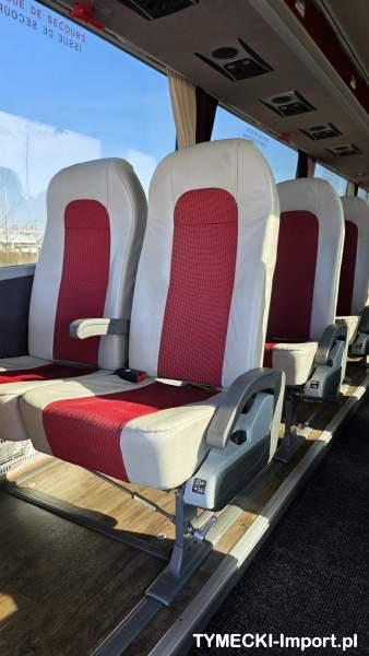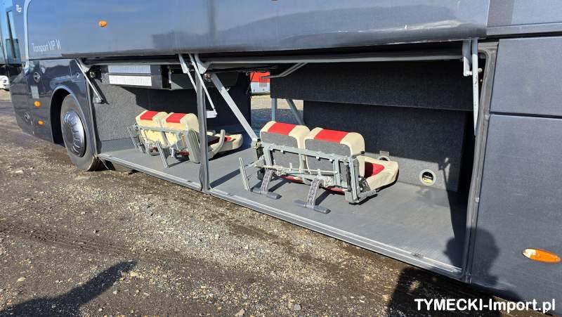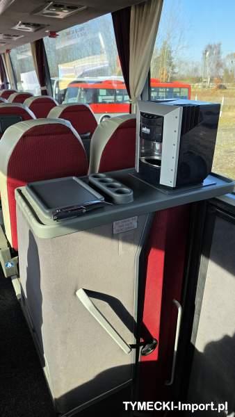 : video, WC, lodówka, caffebar, kabina sypialna, fotele odchylane, oświetlenie indywidualne, nawiewy dyszowe, siateczki, ABS, ASR, tempomat, retarder, CD, podnóżki, stoliczki, mikrofon, klimatyzacja, radio, regulacja wysokości nadwozia, centralny zamek, podwójne szyby boczne, wspomaganie kierownicy, DVD, ogrzewanie stacjonarne, ESP