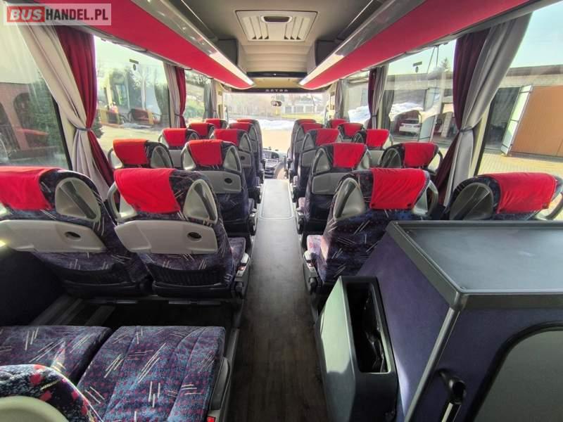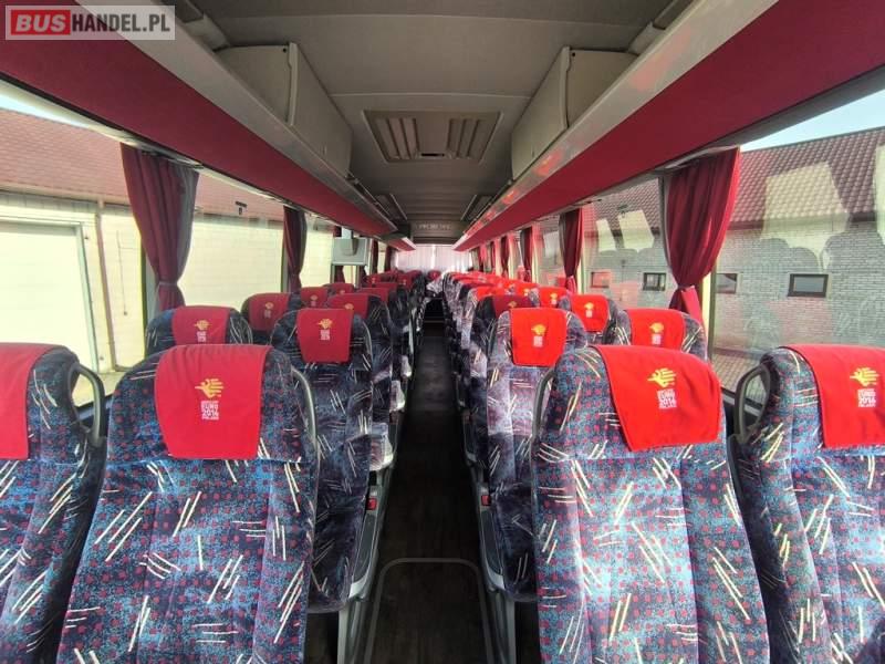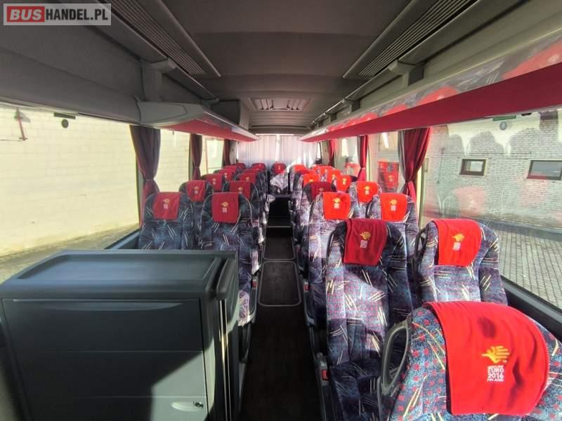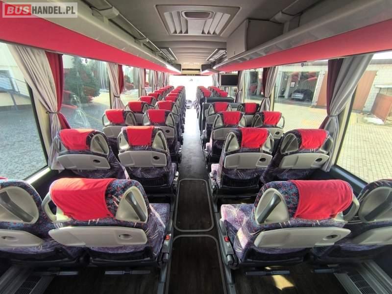 : video, WC, lodówka, caffebar, kabina sypialna, fotele odchylane, oświetlenie indywidualne, nawiewy dyszowe, siateczki, ABS, ASR, tempomat, retarder, CD, podnóżki, stoliczki, mikrofon, klimatyzacja, radio, sejf, regulacja wysokości nadwozia, centralny zamek, podwójne szyby boczne, wspomaganie kierownicy, elektryczne lusterka, fotele odchylane i rozsuwane, DVD, ogrzewanie stacjonarne, hak holowniczy, ESP