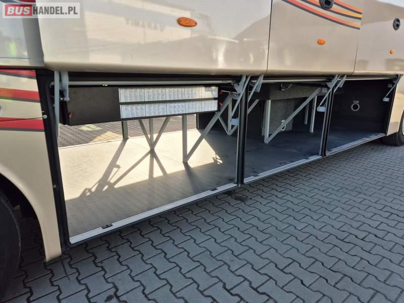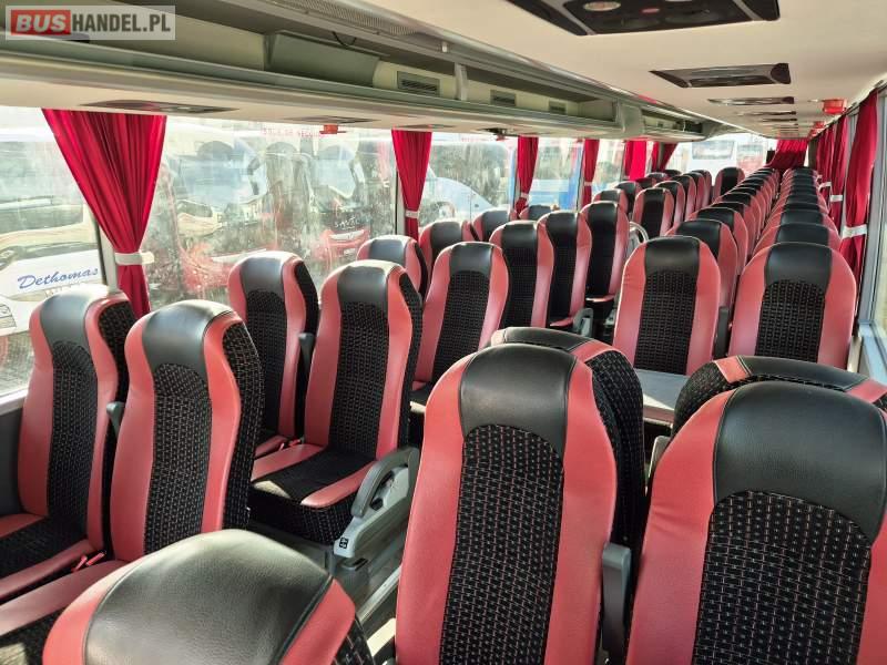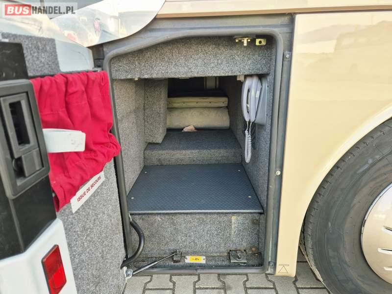 : video, WC, lodówka, kabina sypialna, fotele odchylane, oświetlenie indywidualne, siateczki, ABS, tempomat, retarder, CD, podnóżki, klimatyzacja, radio, regulacja wysokości nadwozia, centralny zamek, podwójne szyby boczne, wspomaganie kierownicy, elektryczne lusterka, DVD, ogrzewanie stacjonarne