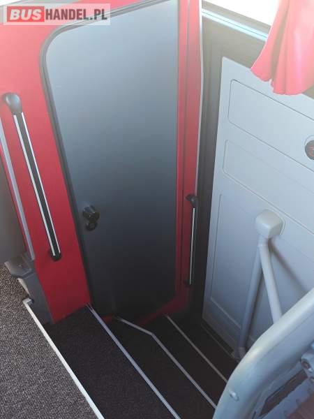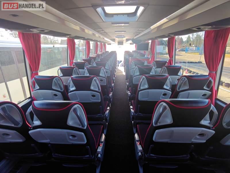 : video, WC, lodówka, caffebar, kabina sypialna, oświetlenie indywidualne, nawiewy dyszowe, siateczki, ABS, ASR, tempomat, retarder, nawigacja, CD, podnóżki, stoliczki, mikrofon, klimatyzacja, radio, regulacja wysokości nadwozia, centralny zamek, podwójne szyby boczne, wspomaganie kierownicy, elektryczne lusterka, fotele odchylane i rozsuwane, DVD, ogrzewanie stacjonarne, ESP