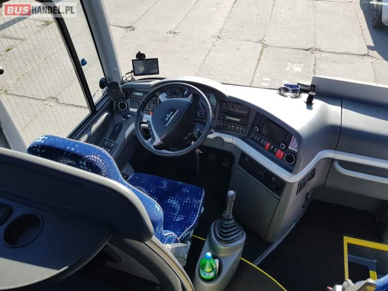 : video, WC, lodówka, caffebar, kabina sypialna, fotele odchylane, siateczki, ABS, ASR, tempomat, retarder, telefon, nawigacja, CD, podnóżki, stoliczki, mikrofon, klimatyzacja, radio, kuchenka mikrofalowa, sejf, podwójne szyby boczne, wspomaganie kierownicy, elektryczne lusterka, fotele odchylane i rozsuwane, DVD, ogrzewanie stacjonarne, hak holowniczy, ESP