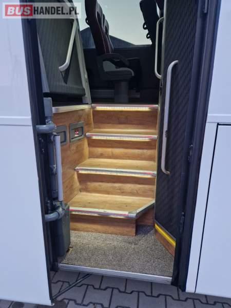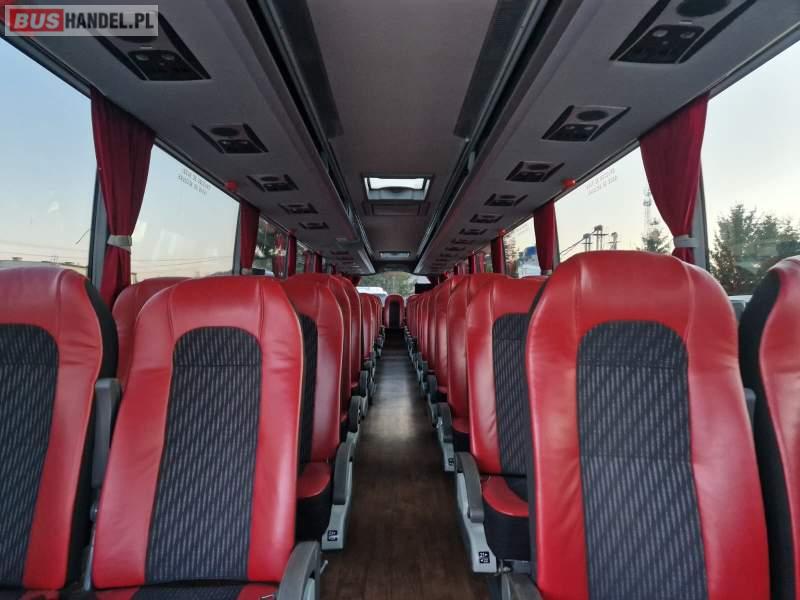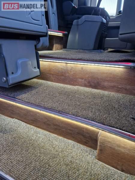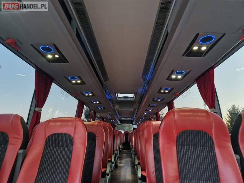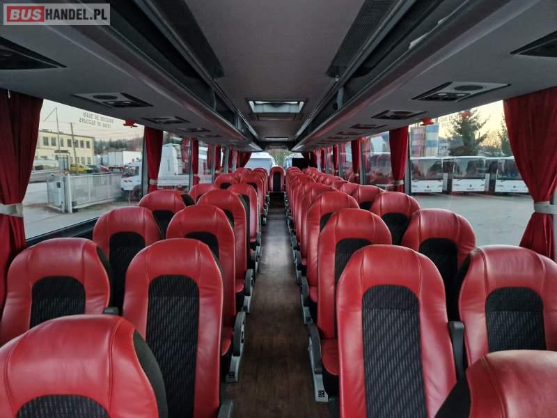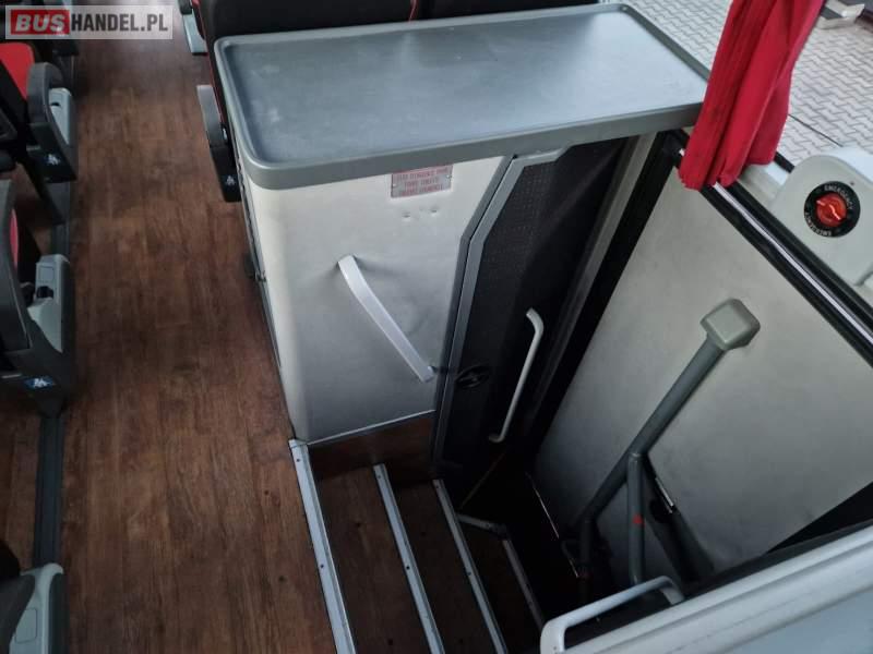 : video, WC, lodówka, fotele odchylane, oświetlenie indywidualne, siateczki, ABS, ASR, tempomat, retarder, telefon, CD, podnóżki, stoliczki, mikrofon, klimatyzacja, radio, wyświetlacz matrix, rampa dla inwalidów, regulacja wysokości nadwozia, centralny zamek, podwójne szyby boczne, wspomaganie kierownicy, elektryczne lusterka, DVD, ogrzewanie stacjonarne, ESP