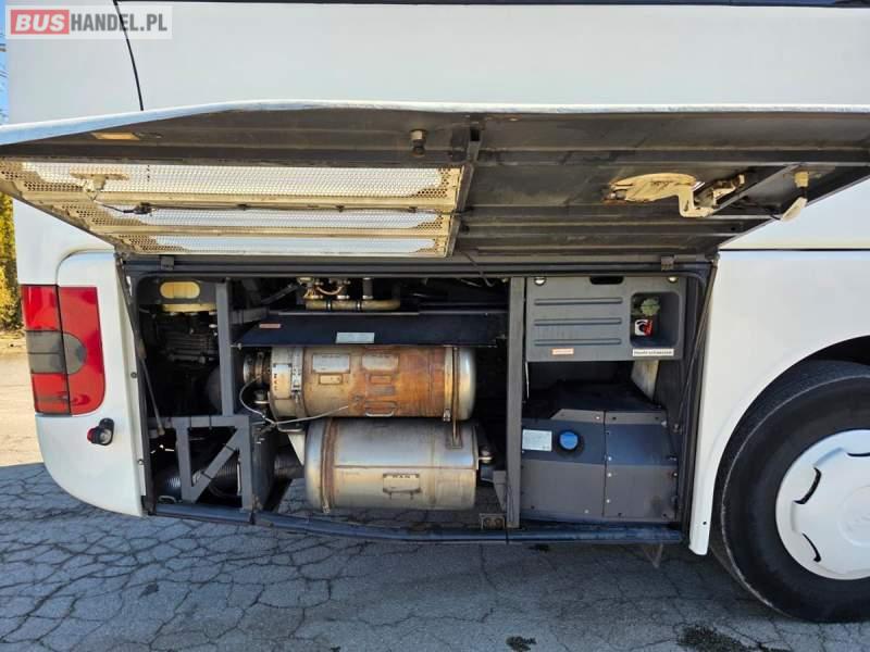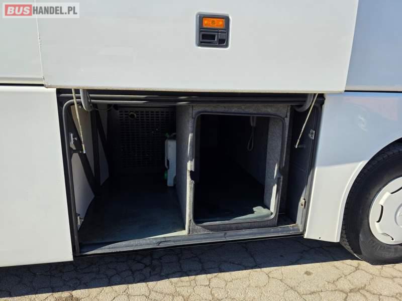 : WC, lodówka, kabina sypialna, fotele odchylane, oświetlenie indywidualne, nawiewy dyszowe, siateczki, ABS, ASR, tempomat, retarder, CD, podnóżki, stoliczki, mikrofon, klimatyzacja, radio, regulacja wysokości nadwozia, centralny zamek, podwójne szyby boczne, wspomaganie kierownicy, elektryczne lusterka, DVD, ogrzewanie stacjonarne, ESP