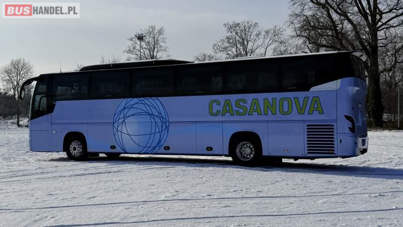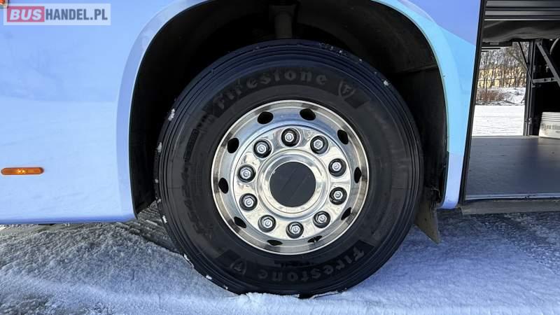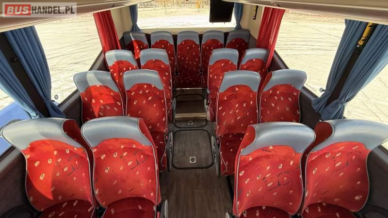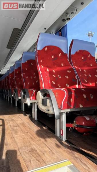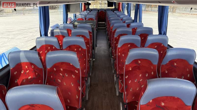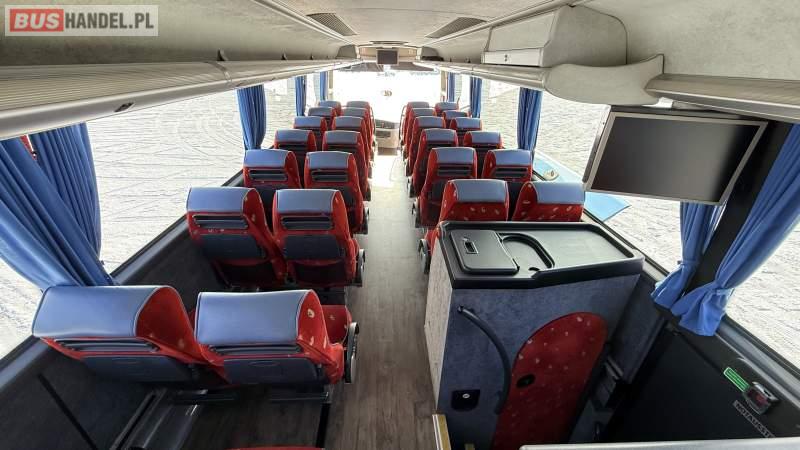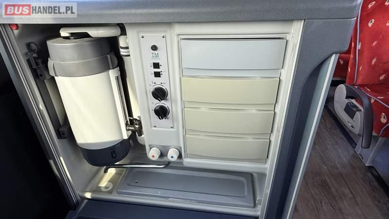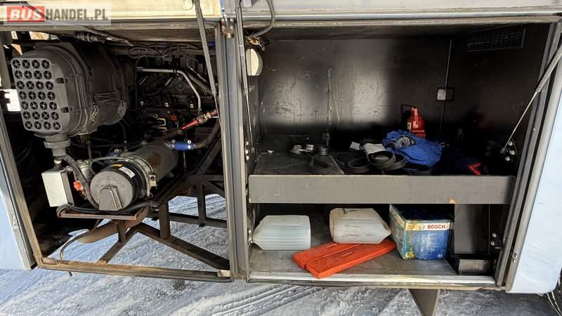 : video, WC, lodówka, oświetlenie indywidualne, nawiewy dyszowe, siateczki, ABS, ASR, tempomat, retarder, CD, podnóżki, stoliczki, mikrofon, klimatyzacja, radio, wyświetlacz matrix, sejf, regulacja wysokości nadwozia, centralny zamek, podwójne szyby boczne, wspomaganie kierownicy, elektryczne lusterka, aluminiowe felgi, fotele odchylane i rozsuwane, DVD, ogrzewanie stacjonarne, ESP