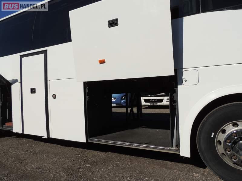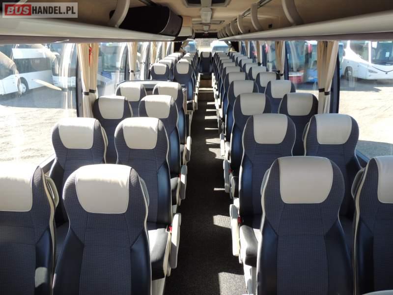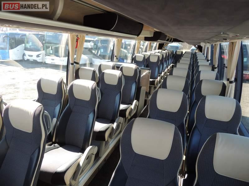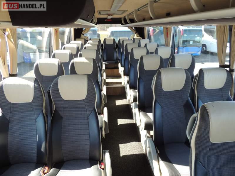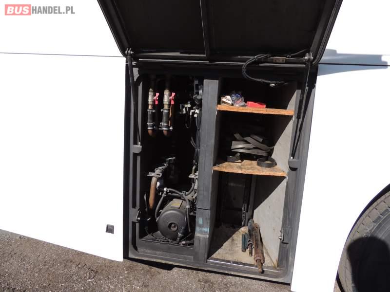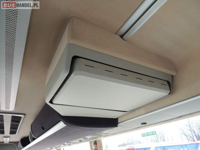 : video, WC, lodówka, caffebar, kabina sypialna, oświetlenie indywidualne, nawiewy dyszowe, siateczki, ABS, ASR, tempomat, retarder, telefon, CD, podnóżki, stoliczki, mikrofon, klimatyzacja, radio, regulacja wysokości nadwozia, centralny zamek, podwójne szyby boczne, wspomaganie kierownicy, elektryczne lusterka, aluminiowe felgi, fotele odchylane i rozsuwane, DVD, ogrzewanie stacjonarne, ESP