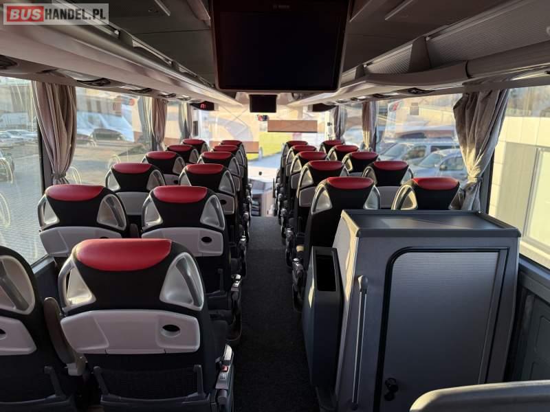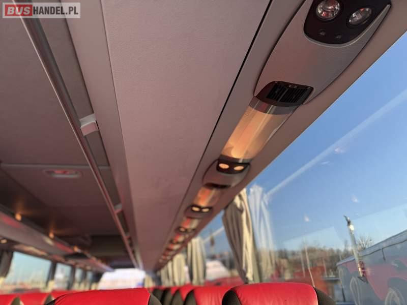 : video, WC, lodówka, caffebar, oświetlenie indywidualne, siateczki, ABS, ASR, tempomat, retarder, telefon, nawigacja, CD, podnóżki, stoliczki, mikrofon, klimatyzacja, radio, sejf, regulacja wysokości nadwozia, centralny zamek, podwójne szyby boczne, wspomaganie kierownicy, elektryczne lusterka, fotele odchylane i rozsuwane, DVD, ogrzewanie stacjonarne, hak holowniczy, ESP