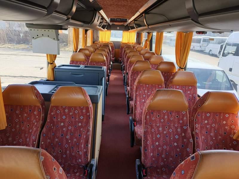 : WC, lodówka, caffebar, kabina sypialna, fotele odchylane, nawiewy dyszowe, siateczki, ABS, ASR, tempomat, retarder, podnóżki, stoliczki, mikrofon, klimatyzacja, radio, regulacja wysokości nadwozia, centralny zamek, wspomaganie kierownicy, elektryczne lusterka, fotele odchylane i rozsuwane, ESP