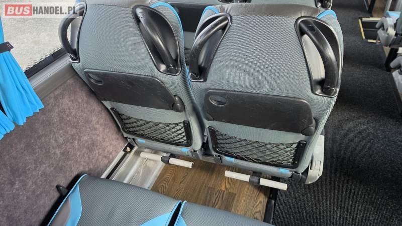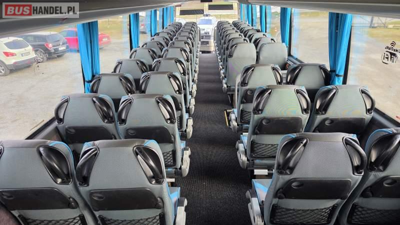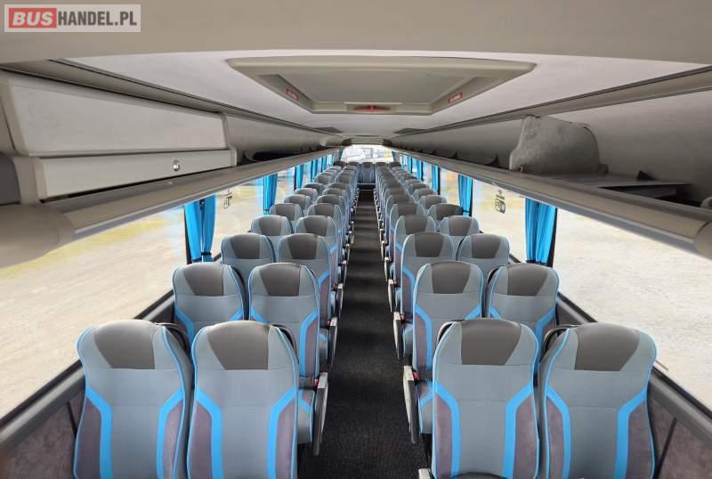 : video, lodówka, kabina sypialna, oświetlenie indywidualne, nawiewy dyszowe, siateczki, ABS, ASR, tempomat, retarder, CD, podnóżki, stoliczki, mikrofon, klimatyzacja, radio, sejf, regulacja wysokości nadwozia, centralny zamek, podwójne szyby boczne, wspomaganie kierownicy, elektryczne lusterka, aluminiowe felgi, fotele odchylane i rozsuwane, DVD, ogrzewanie stacjonarne, ESP