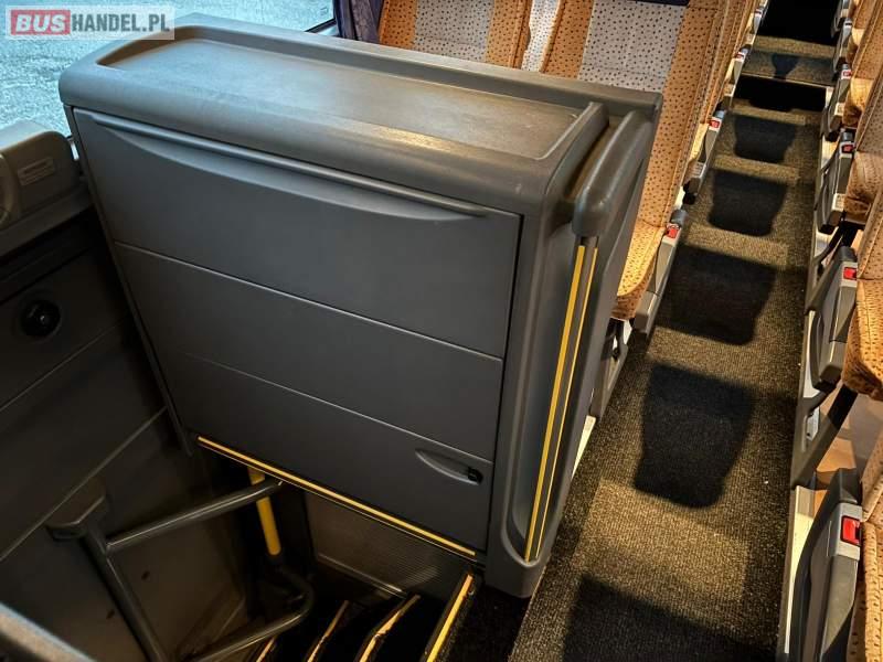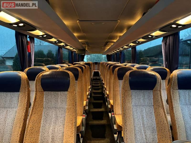 : WC, lodówka, caffebar, oświetlenie indywidualne, nawiewy dyszowe, siateczki, ABS, ASR, tempomat, retarder, nawigacja, podnóżki, stoliczki, mikrofon, klimatyzacja, radio, sejf, regulacja wysokości nadwozia, centralny zamek, podwójne szyby boczne, wspomaganie kierownicy, elektryczne lusterka, fotele odchylane i rozsuwane, DVD, ogrzewanie stacjonarne, ESP