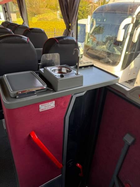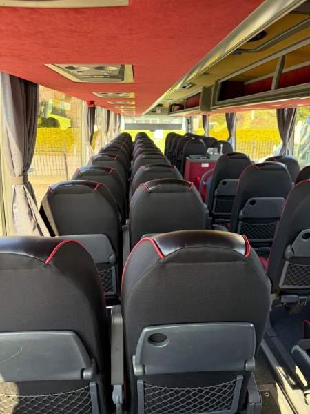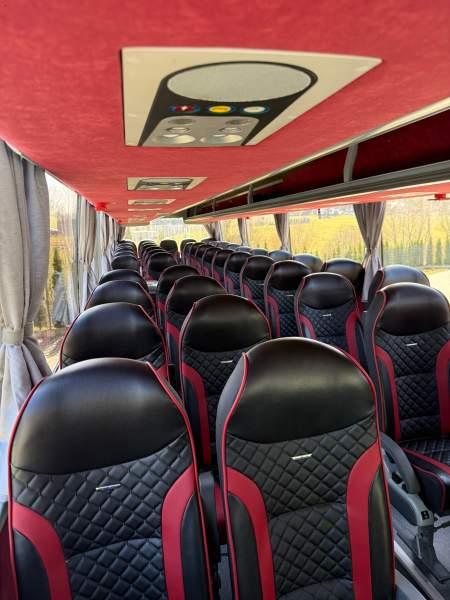: WC, kabina sypialna, fotele odchylane, oświetlenie indywidualne, nawiewy dyszowe, tempomat, retarder, mikrofon, klimatyzacja, regulacja wysokości nadwozia, podwójne szyby boczne, elektryczne lusterka
