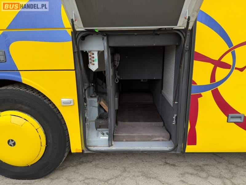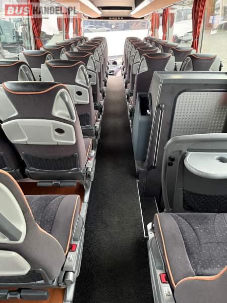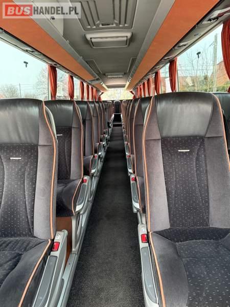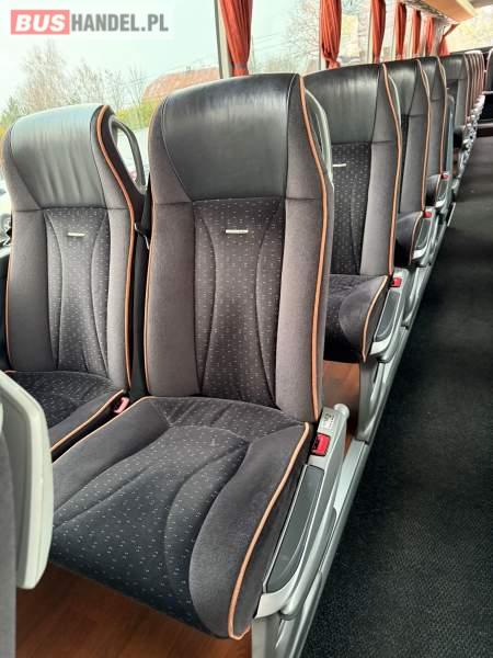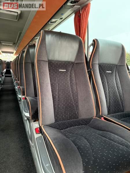 : WC, lodówka, caffebar, kabina sypialna, oświetlenie indywidualne, nawiewy dyszowe, siateczki, ABS, ASR, tempomat, retarder, podnóżki, stoliczki, mikrofon, klimatyzacja, radio, sejf, regulacja wysokości nadwozia, centralny zamek, podwójne szyby boczne, wspomaganie kierownicy, elektryczne lusterka, fotele odchylane i rozsuwane, DVD, ogrzewanie stacjonarne, ESP