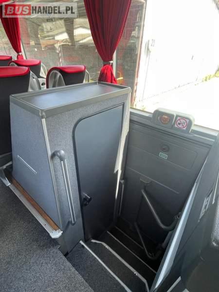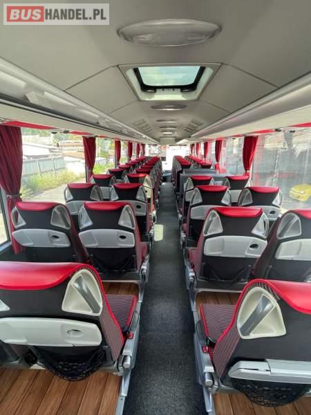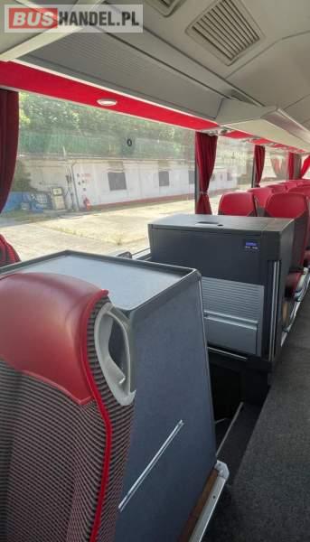 : video, WC, lodówka, caffebar, kabina sypialna, oświetlenie indywidualne, nawiewy dyszowe, siateczki, ABS, ASR, tempomat, retarder, CD, podnóżki, stoliczki, mikrofon, klimatyzacja, radio, sejf, regulacja wysokości nadwozia, centralny zamek, podwójne szyby boczne, wspomaganie kierownicy, elektryczne lusterka, aluminiowe felgi, fotele odchylane i rozsuwane, DVD, ogrzewanie stacjonarne, ESP