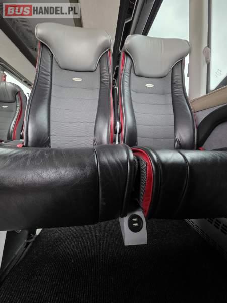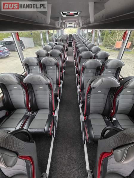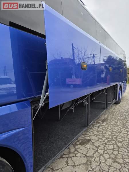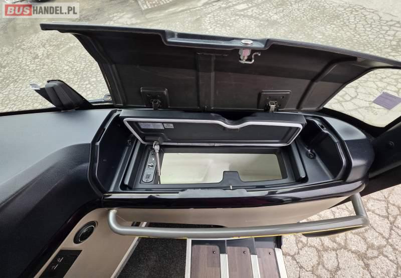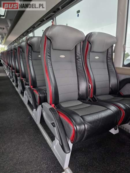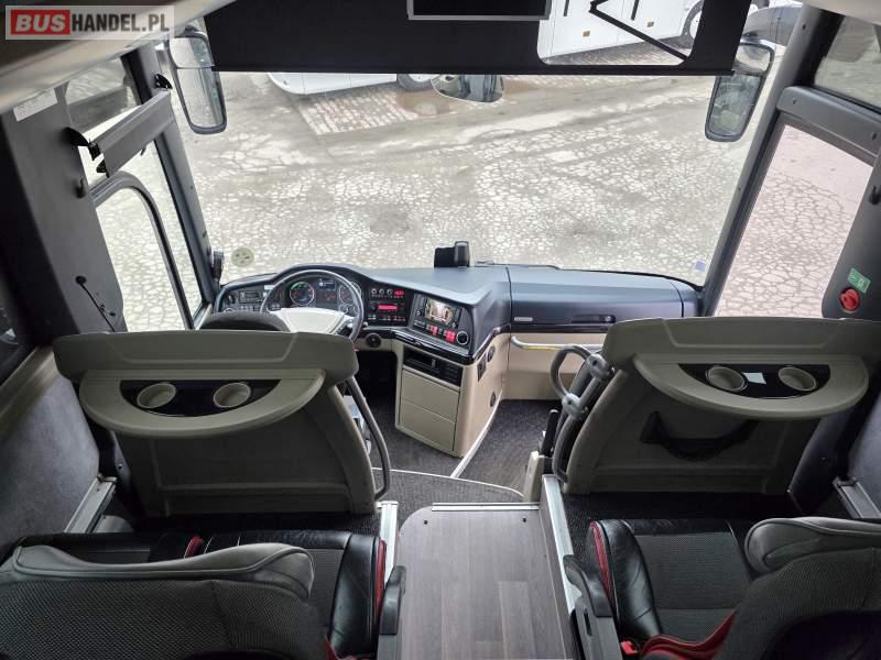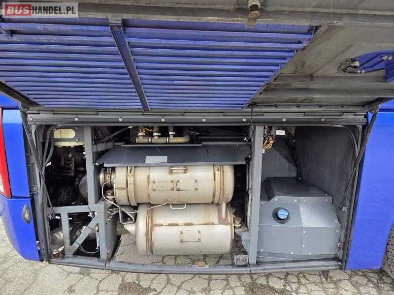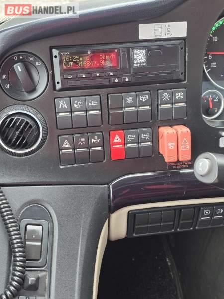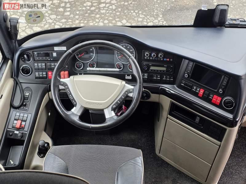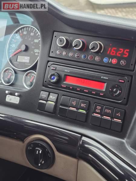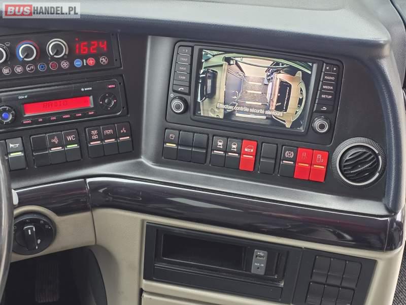 : WC, lodówka, caffebar, kabina sypialna, fotele odchylane, oświetlenie indywidualne, nawiewy dyszowe, siateczki, ABS, ASR, tempomat, retarder, podnóżki, stoliczki, mikrofon, klimatyzacja, radio, regulacja wysokości nadwozia, centralny zamek, podwójne szyby boczne, wspomaganie kierownicy, elektryczne lusterka, fotele odchylane i rozsuwane, DVD, ogrzewanie stacjonarne, ESP