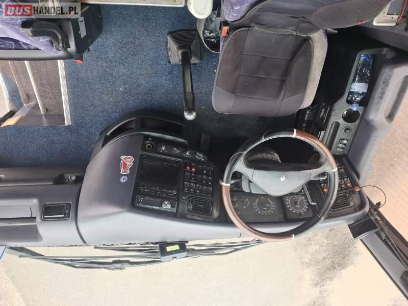 : WC, lodówka, caffebar, kabina sypialna, fotele odchylane, oświetlenie indywidualne, ABS, ASR, retarder, CD, podnóżki, mikrofon, klimatyzacja, radio, regulacja wysokości nadwozia, centralny zamek, podwójne szyby boczne, elektryczne lusterka, aluminiowe felgi, fotele odchylane i rozsuwane, DVD, ogrzewanie stacjonarne, ESP