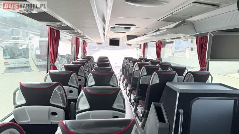 : klimatyzacja, WC, lodówka, kabina sypialna, oświetlenie indywidualne, nawiewy dyszowe, fotele odchylane, podnóżki, stoliczki, siateczki, ABS, ASR, tempomat, retarder, mikrofon, radio, fotele odchylane i rozsuwane, sejf, regulacja wysokości nadwozia, centralny zamek, podwójne szyby boczne, wspomaganie kierownicy, elektryczne lusterka, ogrzewanie stacjonarne, DVD, ESP