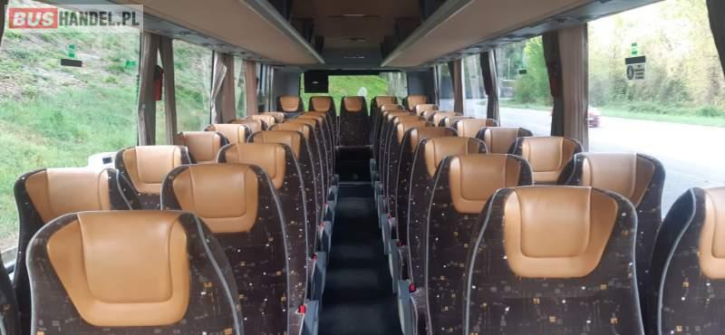 : video, lodówka, fotele odchylane, oświetlenie indywidualne, nawiewy dyszowe, siateczki, ABS, ASR, tempomat, retarder, telefon, CD, stoliczki, klimatyzacja, radio, regulacja wysokości nadwozia, centralny zamek, podwójne szyby boczne, wspomaganie kierownicy, elektryczne lusterka, DVD, ogrzewanie stacjonarne