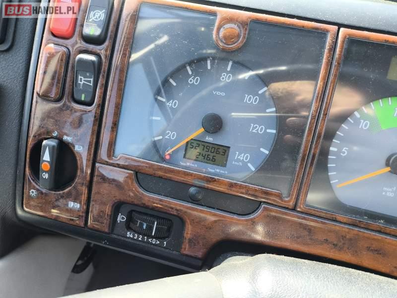 : lodówka, oświetlenie indywidualne, nawiewy dyszowe, siateczki, ABS, ASR, tempomat, retarder, podnóżki, stoliczki, mikrofon, klimatyzacja, radio, podwójne szyby boczne, wspomaganie kierownicy, elektryczne lusterka, fotele odchylane i rozsuwane, ogrzewanie stacjonarne, hak holowniczy