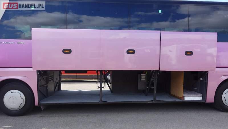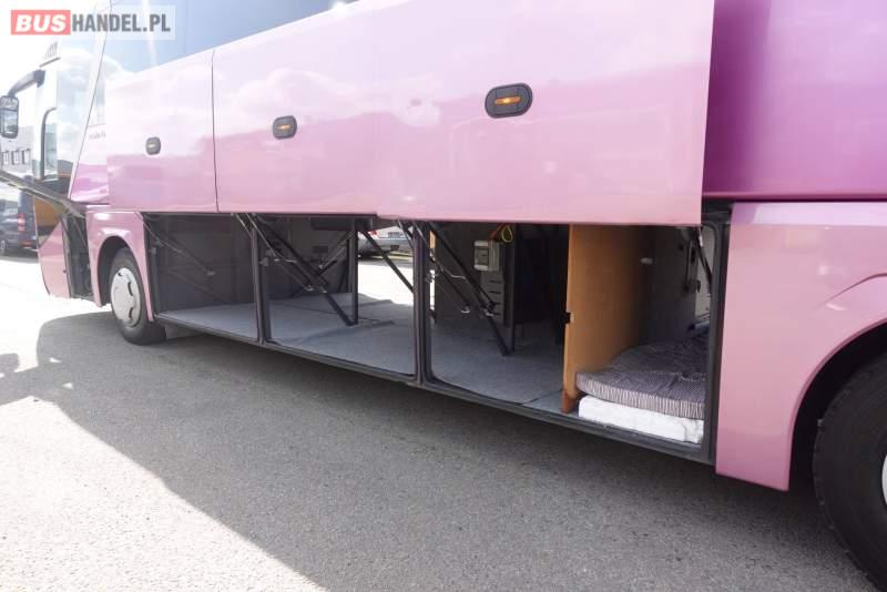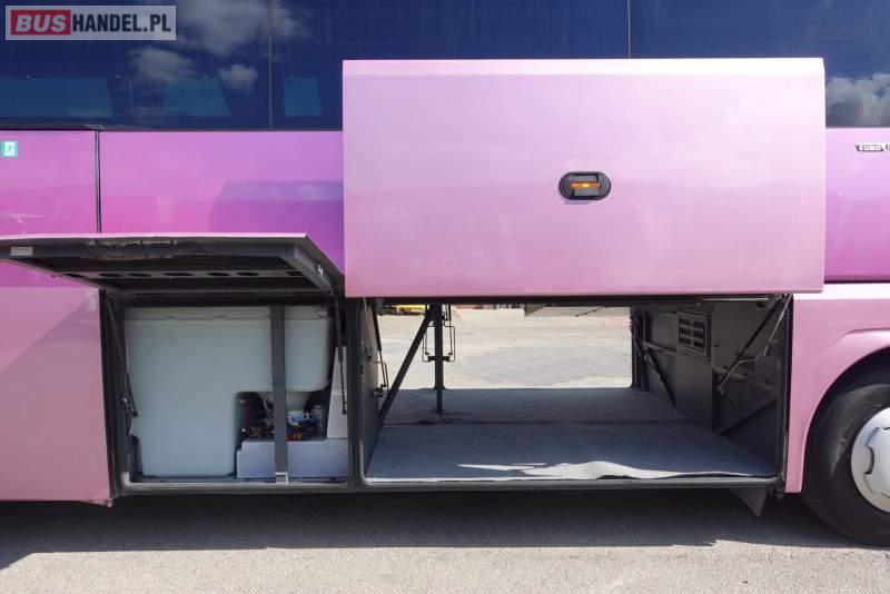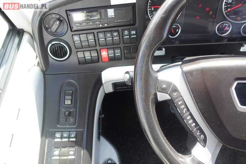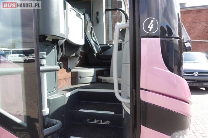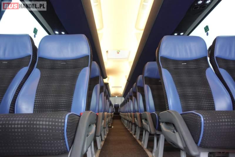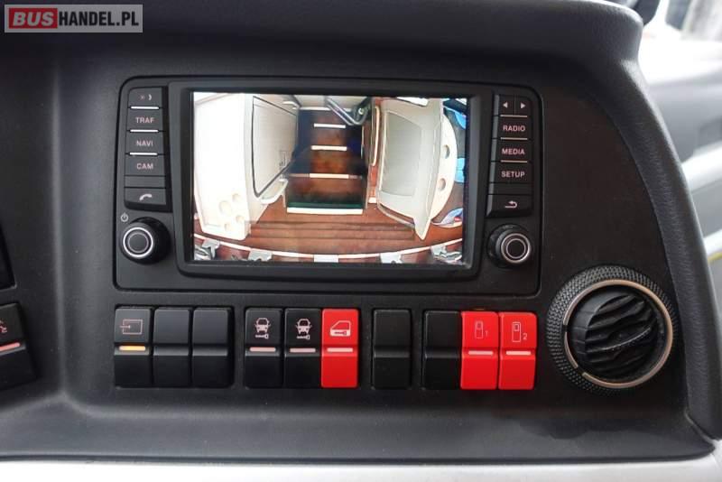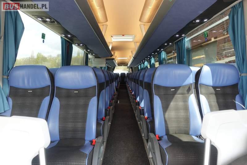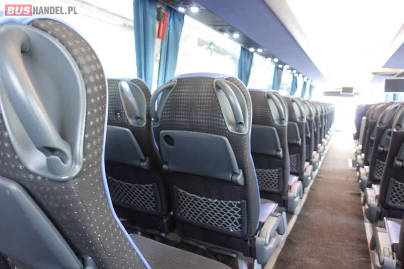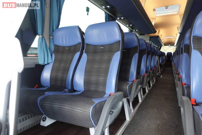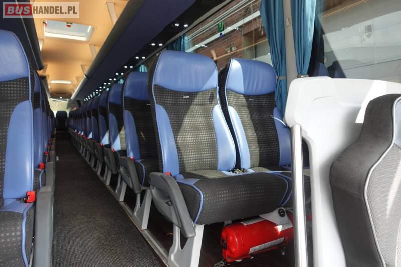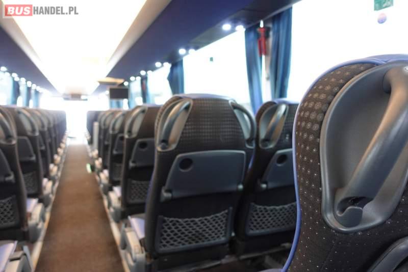 : video, WC, lodówka, kabina sypialna, fotele odchylane, oświetlenie indywidualne, nawiewy dyszowe, siateczki, ABS, ASR, tempomat, retarder, nawigacja, CD, podnóżki, stoliczki, mikrofon, klimatyzacja, radio, wyświetlacz matrix, regulacja wysokości nadwozia, centralny zamek, podwójne szyby boczne, wspomaganie kierownicy, elektryczne lusterka, fotele odchylane i rozsuwane, DVD, ogrzewanie stacjonarne, ESP
