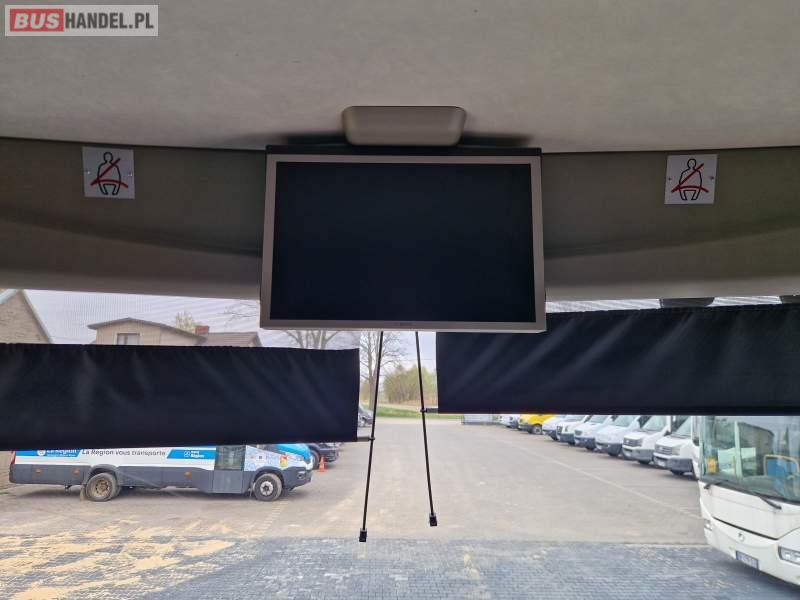 : video, WC, lodówka, fotele odchylane, oświetlenie indywidualne, siateczki, ABS, ASR, tempomat, retarder, telefon, CD, podnóżki, stoliczki, mikrofon, klimatyzacja, radio, regulacja wysokości nadwozia, centralny zamek, podwójne szyby boczne, wspomaganie kierownicy, elektryczne lusterka, aluminiowe felgi, DVD, ogrzewanie stacjonarne, ESP