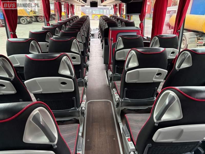 : video, WC, lodówka, caffebar, kabina sypialna, oświetlenie indywidualne, nawiewy dyszowe, siateczki, ABS, ASR, tempomat, retarder, CD, podnóżki, stoliczki, mikrofon, klimatyzacja, radio, regulacja wysokości nadwozia, centralny zamek, podwójne szyby boczne, wspomaganie kierownicy, elektryczne lusterka, fotele odchylane i rozsuwane, DVD, ogrzewanie stacjonarne, ESP