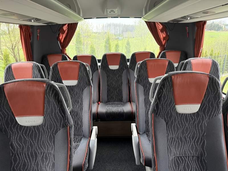 : video, WC, lodówka, kabina sypialna, fotele odchylane, oświetlenie indywidualne, nawiewy dyszowe, siateczki, ABS, ASR, tempomat, retarder, telefon, CD, podnóżki, stoliczki, mikrofon, klimatyzacja, radio, regulacja wysokości nadwozia, centralny zamek, podwójne szyby boczne, wspomaganie kierownicy, elektryczne lusterka, fotele odchylane i rozsuwane, DVD, ogrzewanie stacjonarne, ESP