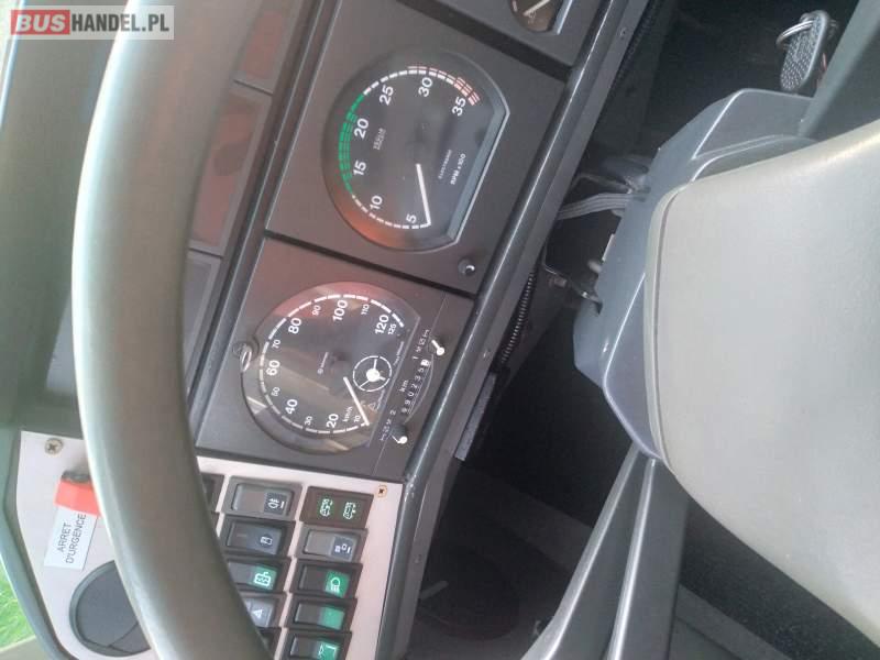 : lodówka, nawiewy dyszowe, ABS, retarder, mikrofon, klimatyzacja, radio, podwójne szyby boczne, wspomaganie kierownicy, elektryczne lusterka, fotele odchylane i rozsuwane, ogrzewanie stacjonarne