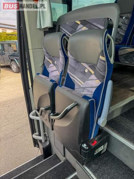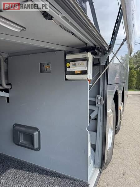: WC, lodówka, caffebar, kabina sypialna, fotele odchylane, oświetlenie indywidualne, nawiewy dyszowe, siateczki, ABS, ASR, tempomat, retarder, podnóżki, stoliczki, mikrofon, klimatyzacja, radio, sejf, regulacja wysokości nadwozia, centralny zamek, podwójne szyby boczne, elektryczne lusterka, aluminiowe felgi, fotele odchylane i rozsuwane, DVD, ogrzewanie stacjonarne, ESP
