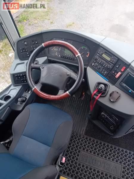 : video, WC, lodówka, caffebar, kabina sypialna, oświetlenie indywidualne, nawiewy dyszowe, ABS, ASR, tempomat, retarder, CD, podnóżki, mikrofon, klimatyzacja, radio, regulacja wysokości nadwozia, podwójne szyby boczne, wspomaganie kierownicy, elektryczne lusterka, fotele odchylane i rozsuwane, DVD, ESP