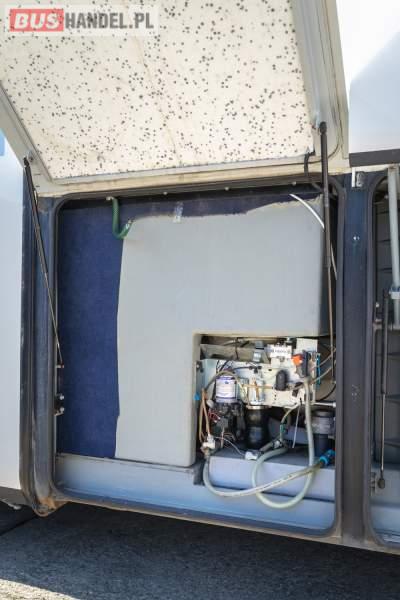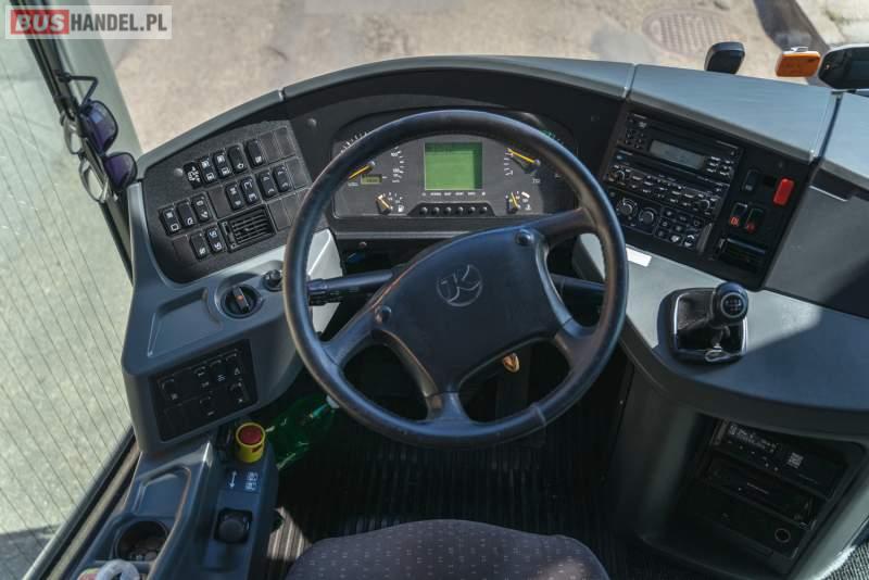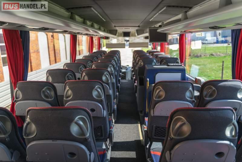 : video, WC, lodówka, caffebar, kabina sypialna, fotele odchylane, nawiewy dyszowe, siateczki, ABS, tempomat, retarder, CD, podnóżki, stoliczki, mikrofon, klimatyzacja, radio, regulacja wysokości nadwozia, wspomaganie kierownicy, fotele odchylane i rozsuwane, DVD